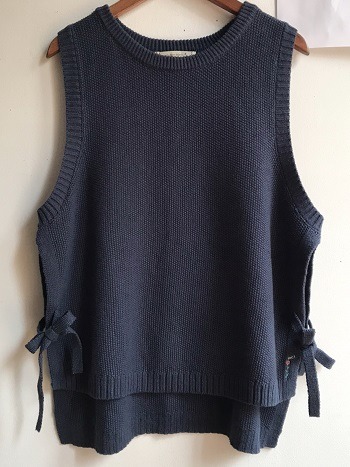 脇リボンの綿麻ニットベスト