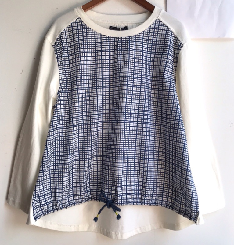 前後異素材使い、裾の紐でシルエットが変えられるプルオーバー