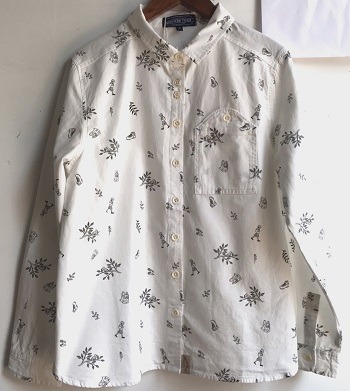 【 NORTHERN TRUCK 】綿コットン 山ポケット付ハイキングプリントシャツブラウス オフホワイト