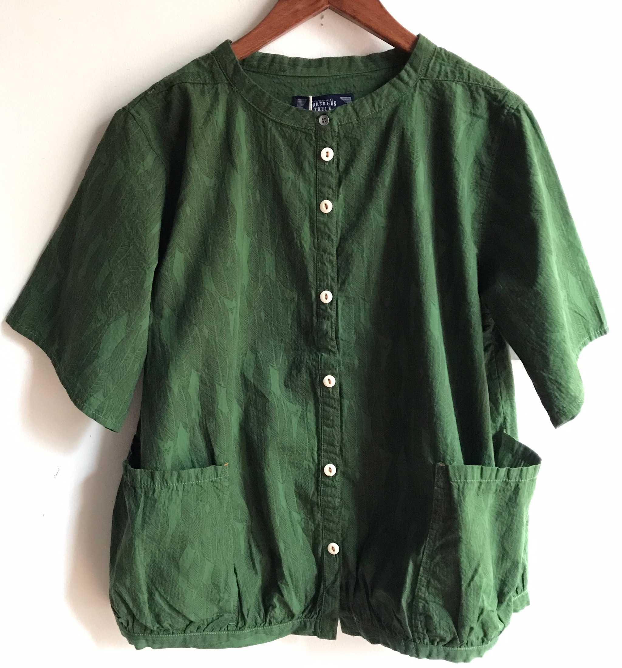 綿100%ボタニカル柄(庭の植物と遊びにきた蜂)プリントシャツブラウス。