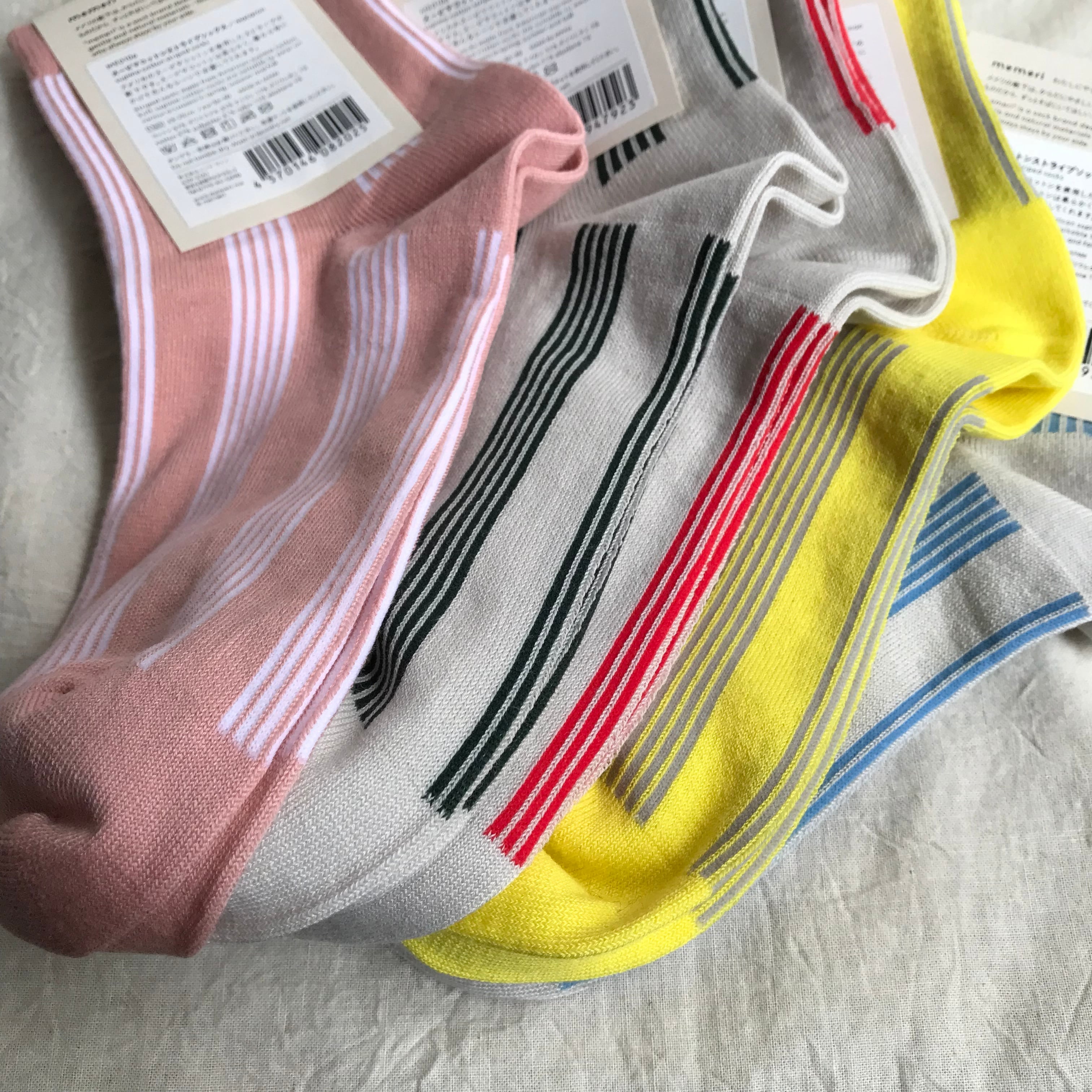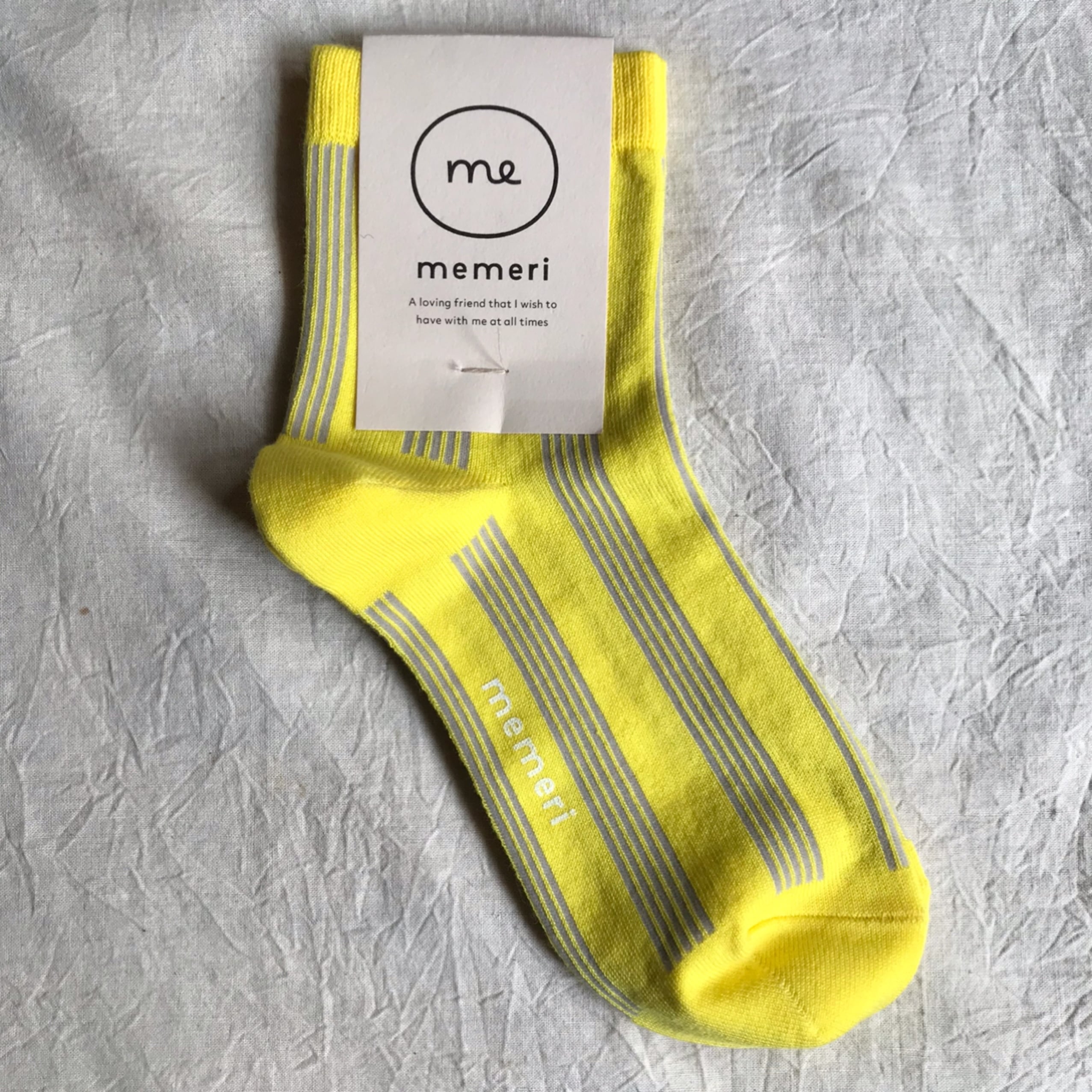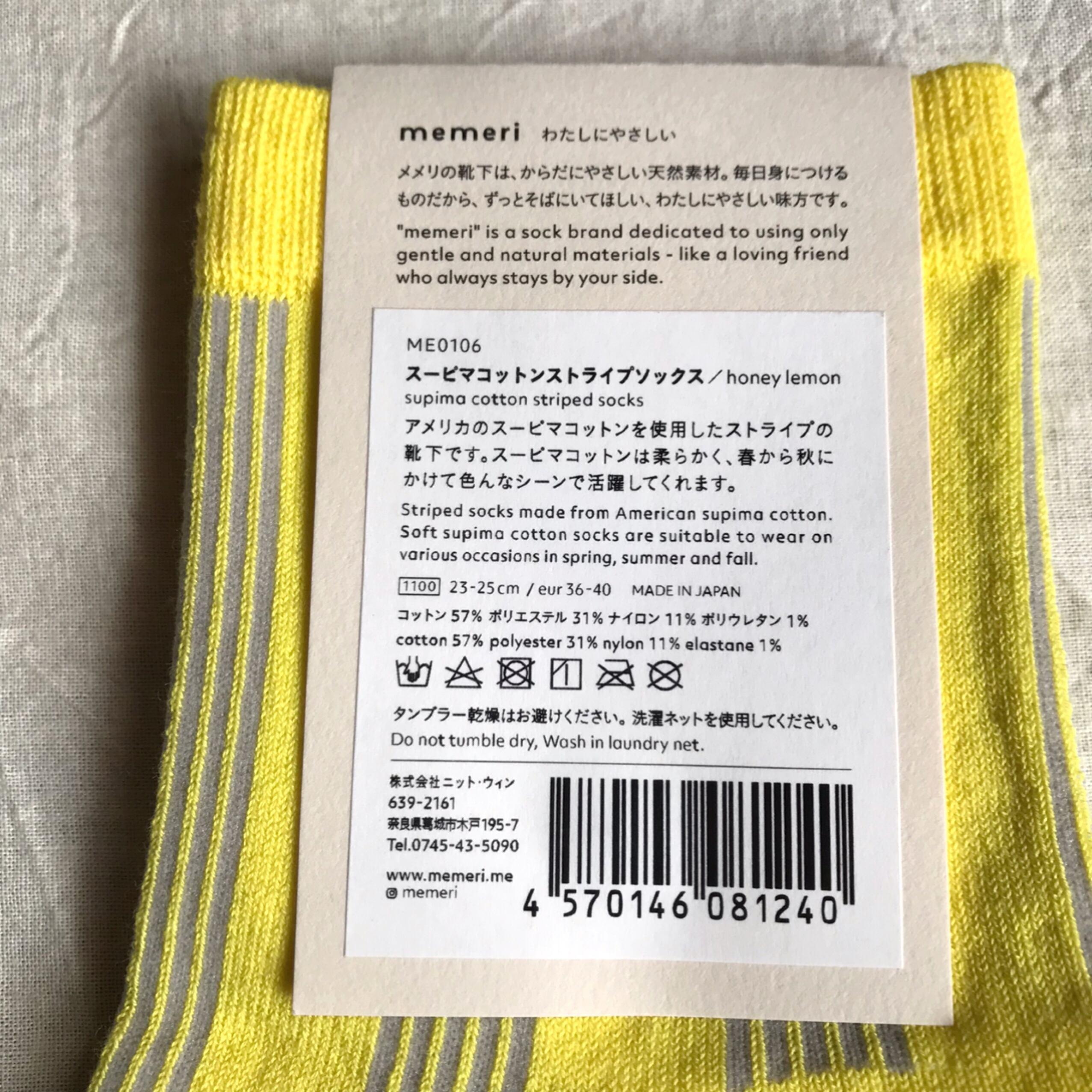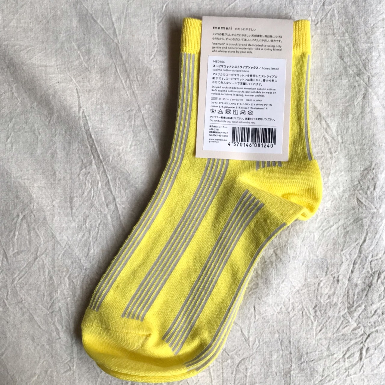 【memeri】綿 スーピマコットンストライプソックス ハニーレモン ME0106 23cm~25cm 日本製 【メメリ】