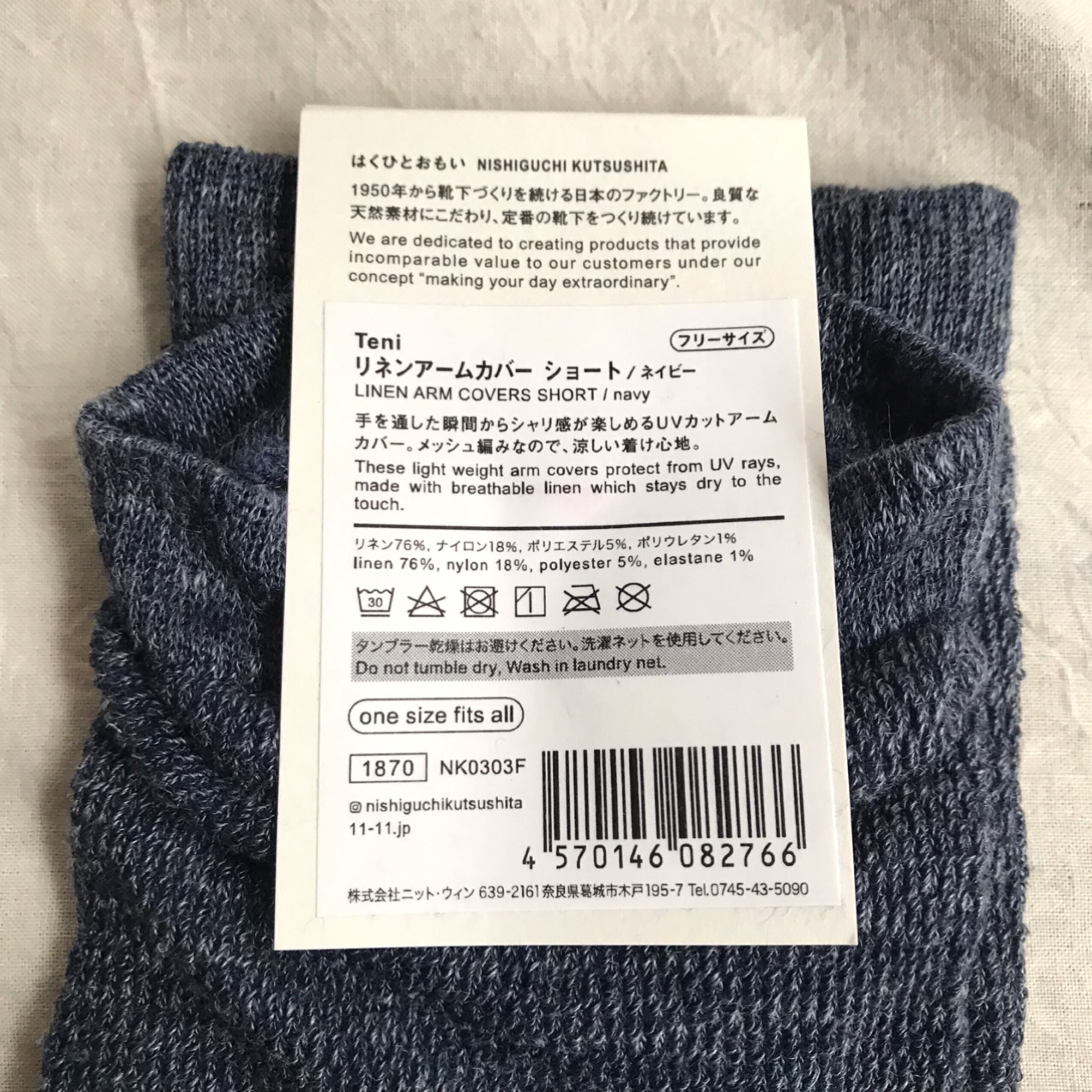 【NISHIGUCHI KUTSUSHITA】麻リネン アームカバー ショート ネイビー UVカット日除け 冷房対策 日本製【ニシグチクツシタ】