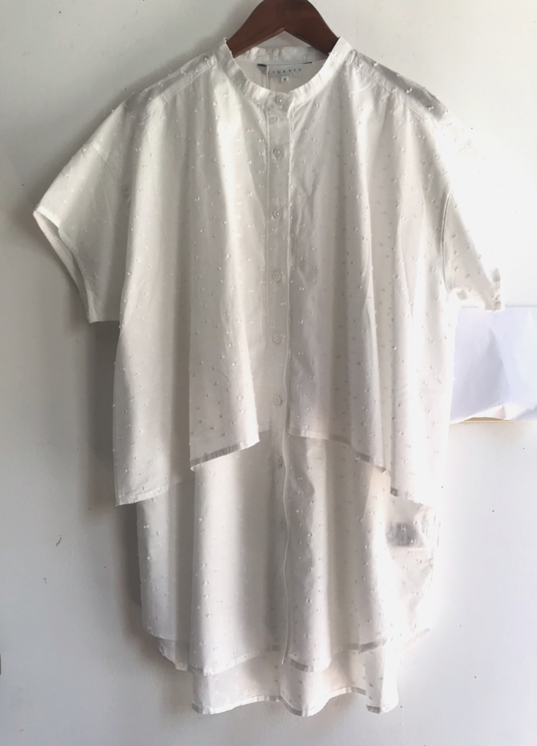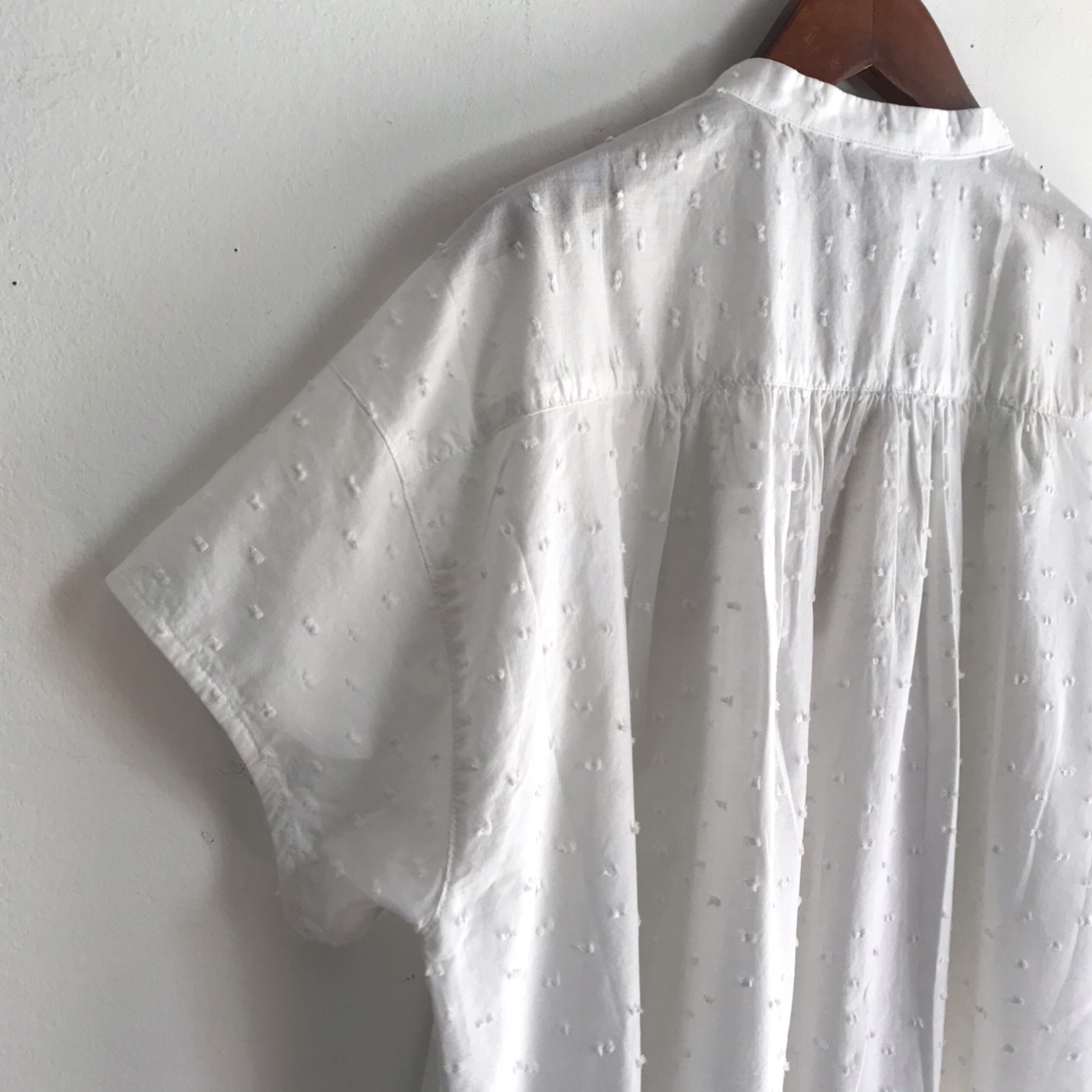 【サイズ】Mサイズ(レディース)肩幅52.5㎝、胸幅55cm、着丈74/80cm、袖丈10.5㎝