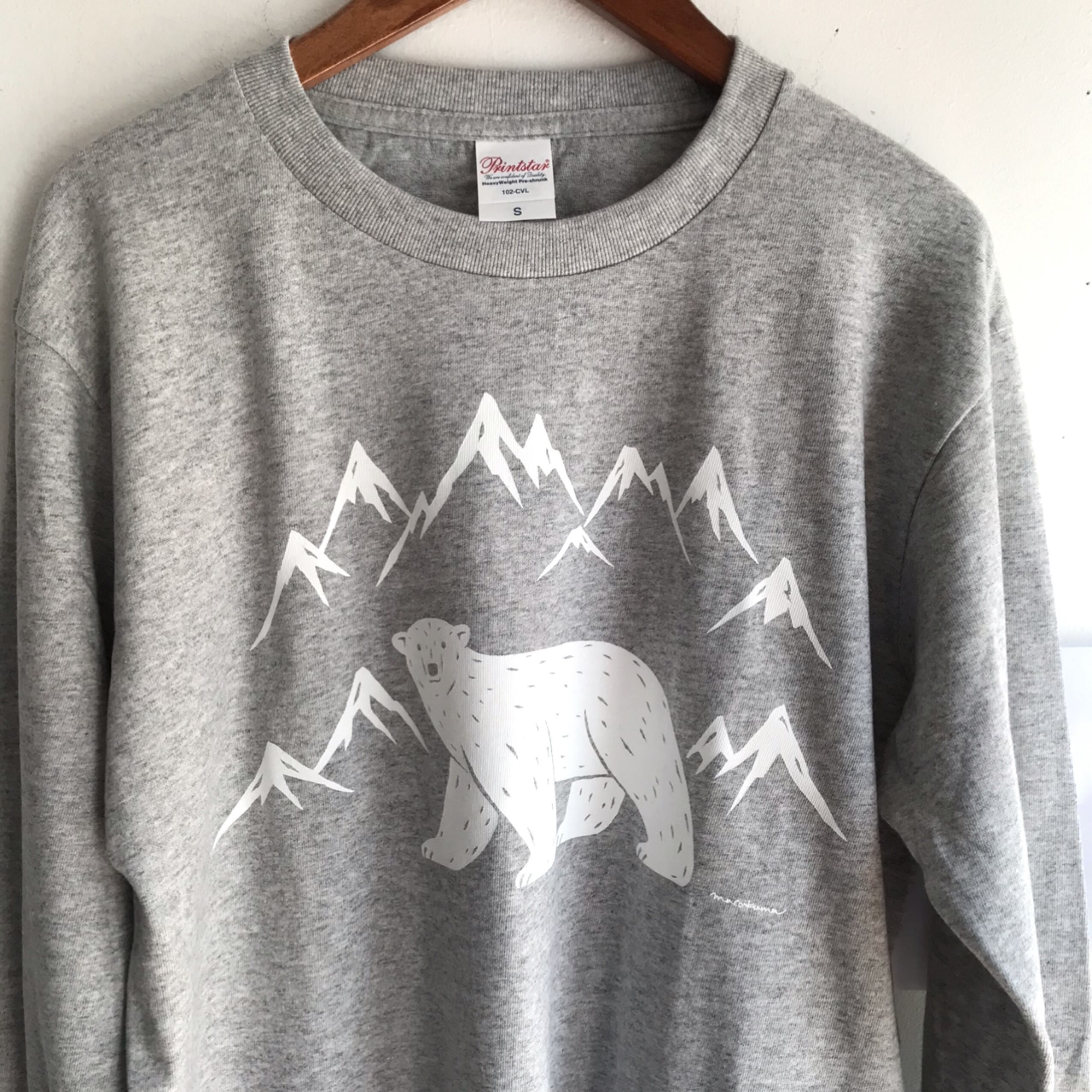 【2025年Tシャツ展】macokuma プリントTシャツ長袖 杢グレー Sサイズ【ハンドメイドTシャツ・作家作品】