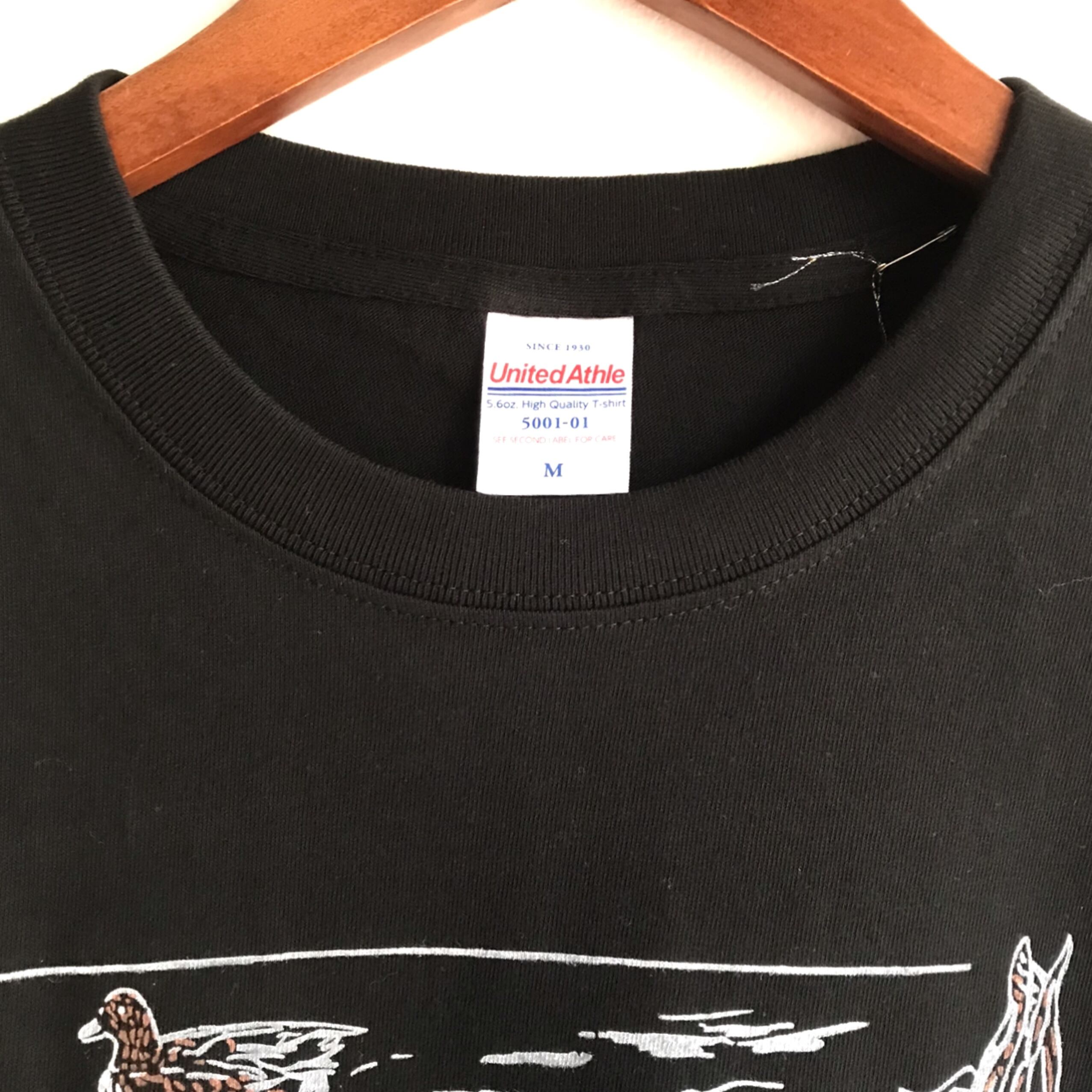 【2025年Tシャツ展】aosansyo 川辺のヒドリガモTシャツ ブラックS・M・L・XLサイズ【ハンドメイドTシャツ・作家作品】