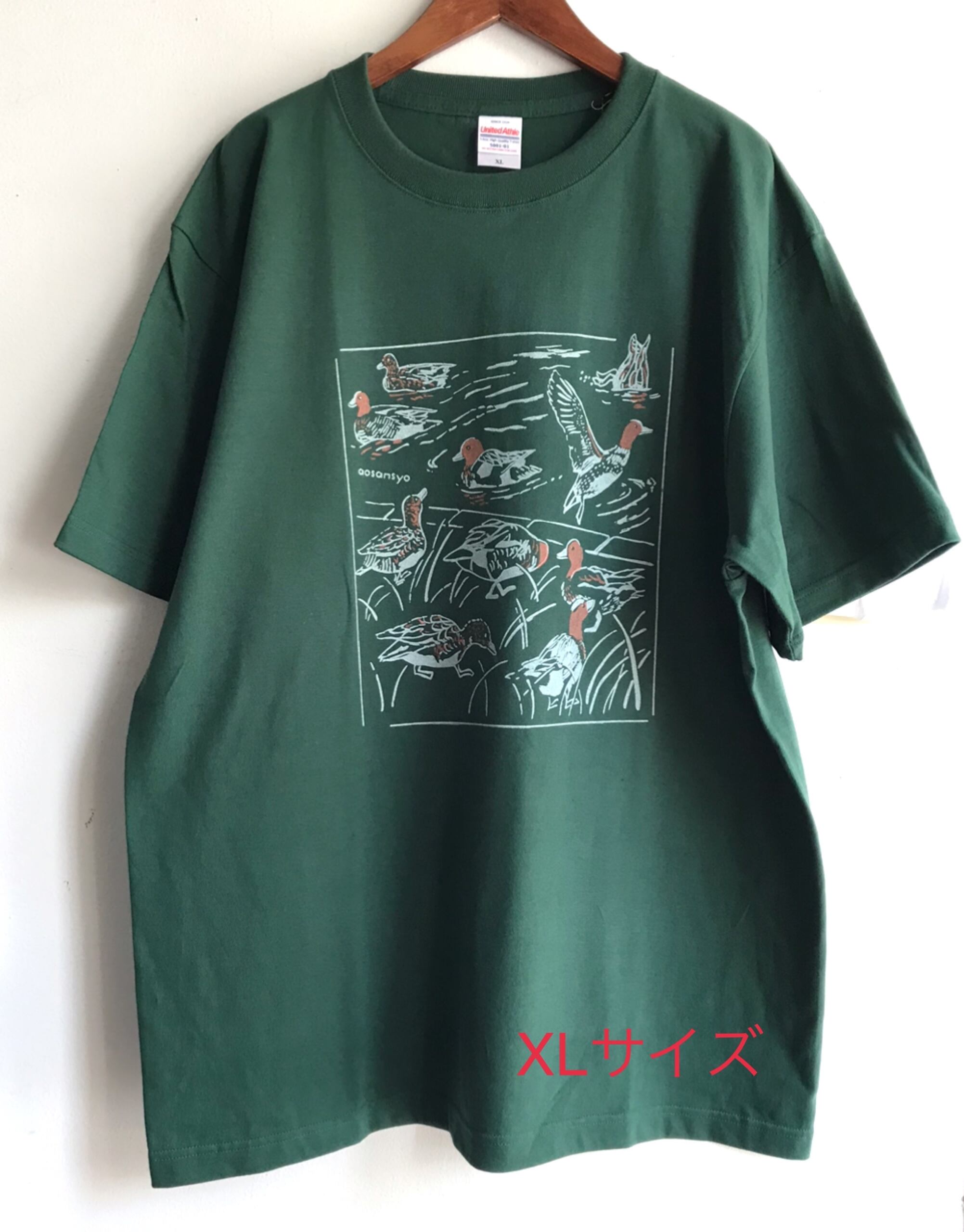 【2025年Tシャツ展】aosansyo 川辺のヒドリガモTシャツ アイビーグリーン S・M・L・XLサイズ【ハンドメイドTシャツ・作家作品】
