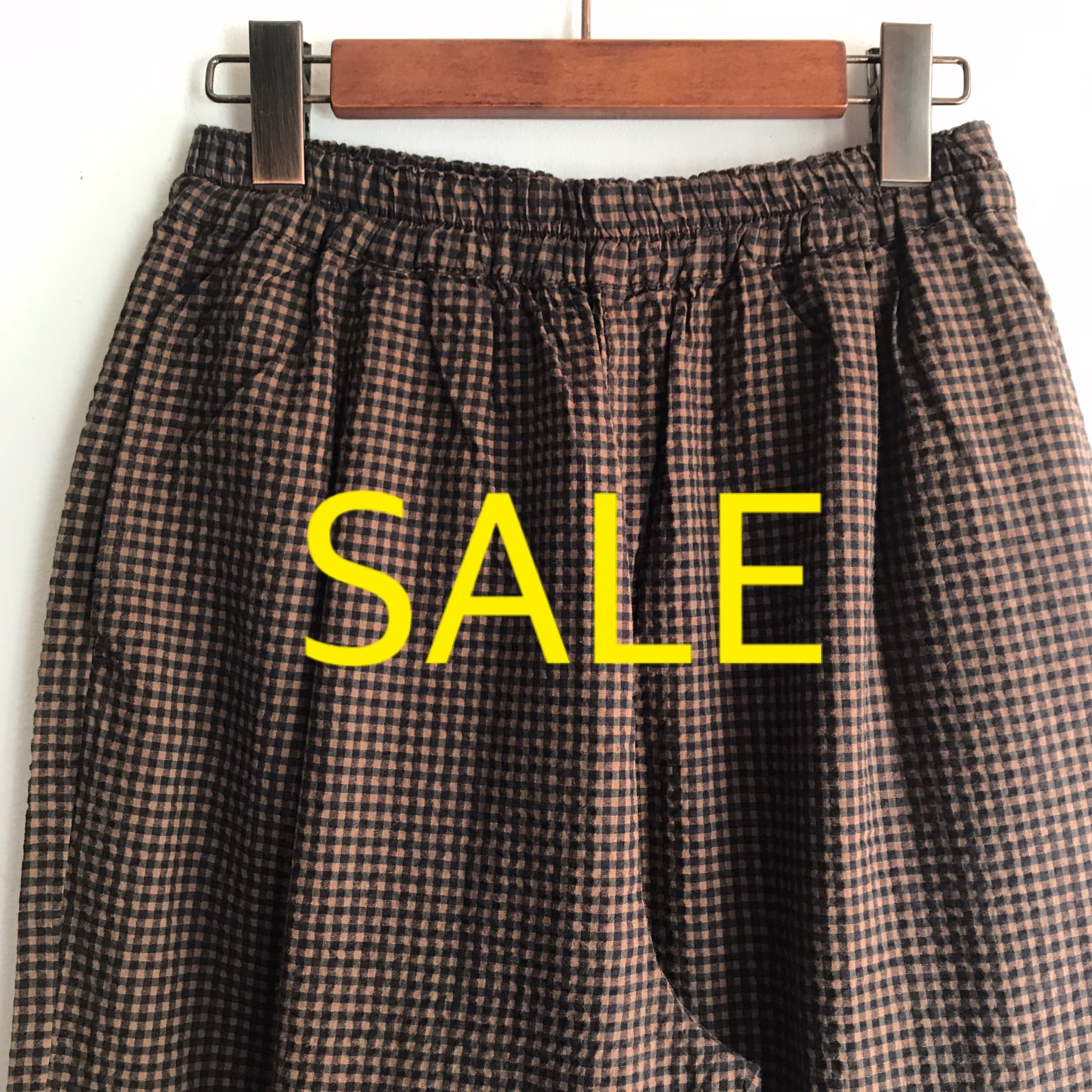 SALE20%OFF【 Keitto 】綿100% 9分丈サッカーワイドパンツ ダークブラウンギンガム Mサイズ KEBP5377【ケイット】