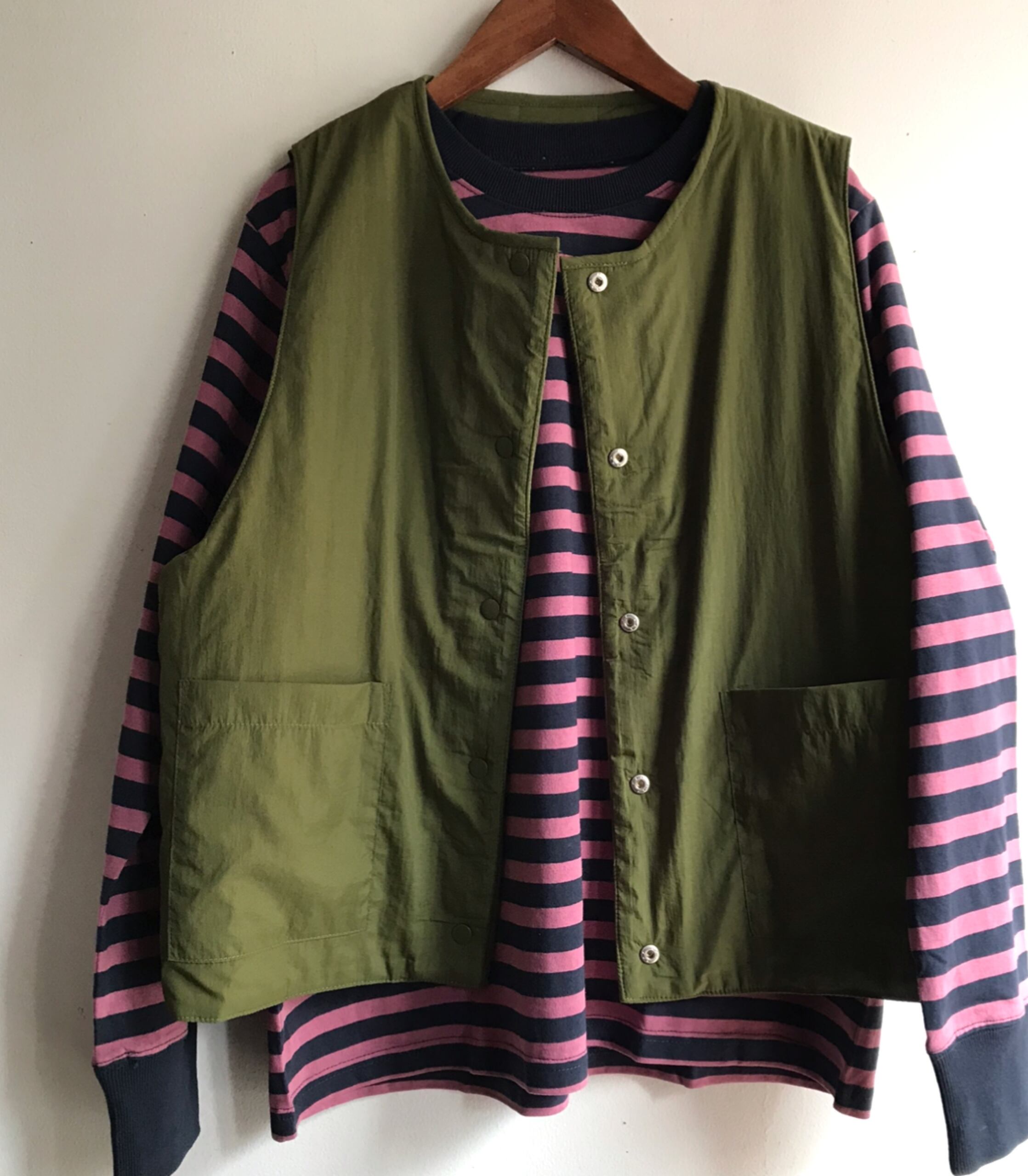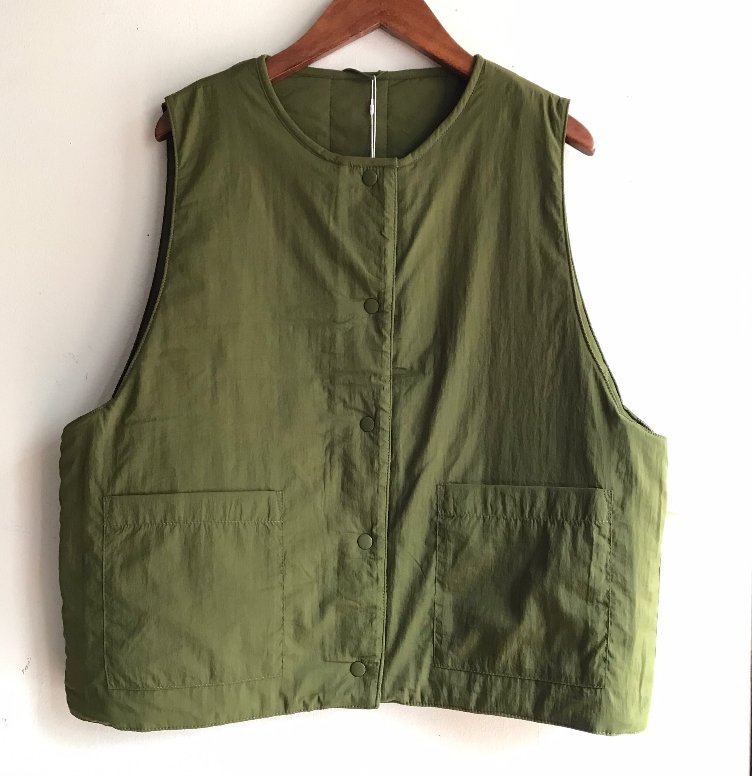 ナイロン素材のリバーシブルで着れる軽いベスト。