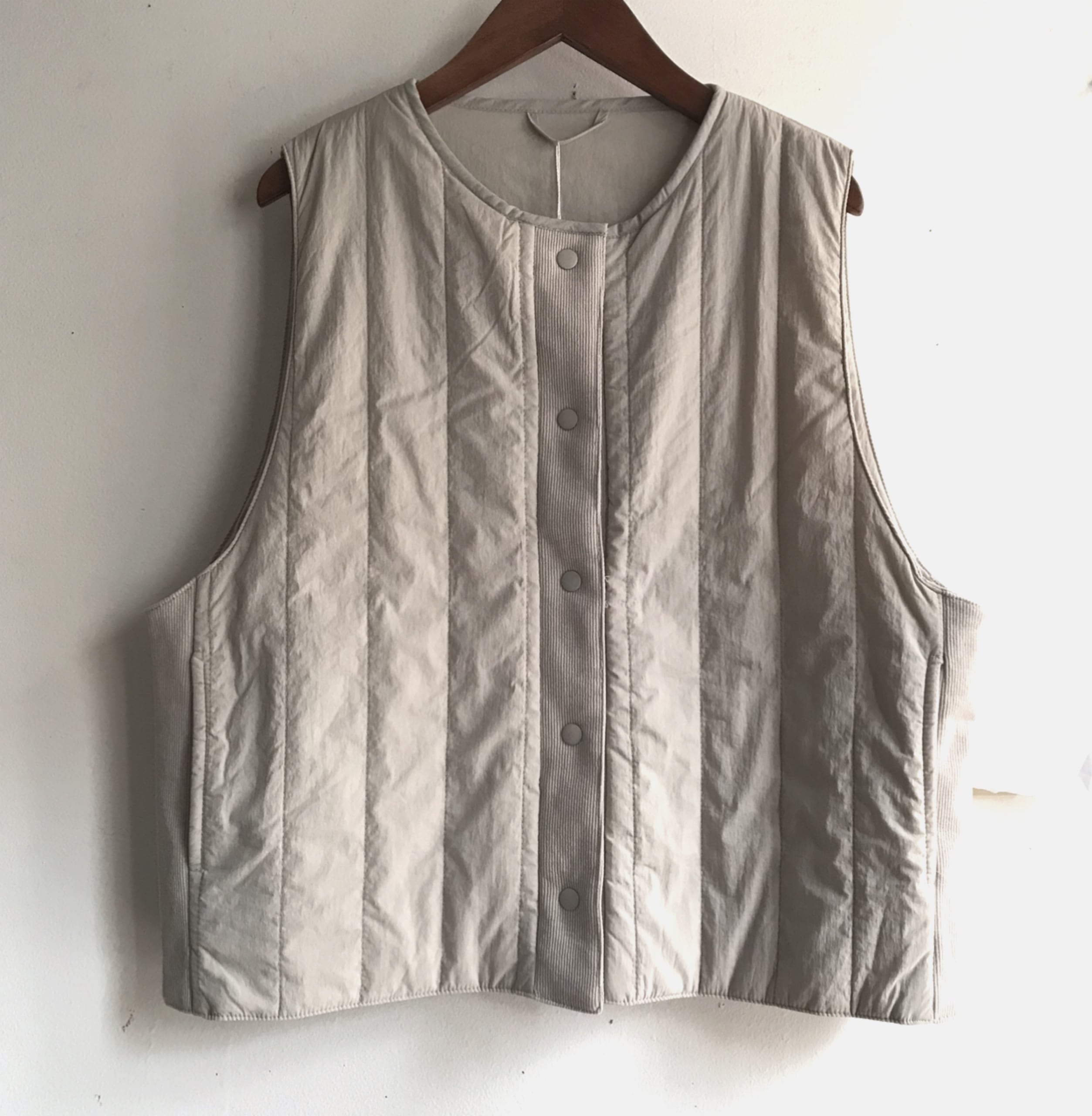 ナイロン素材のリバーシブルで着れる軽いベスト。