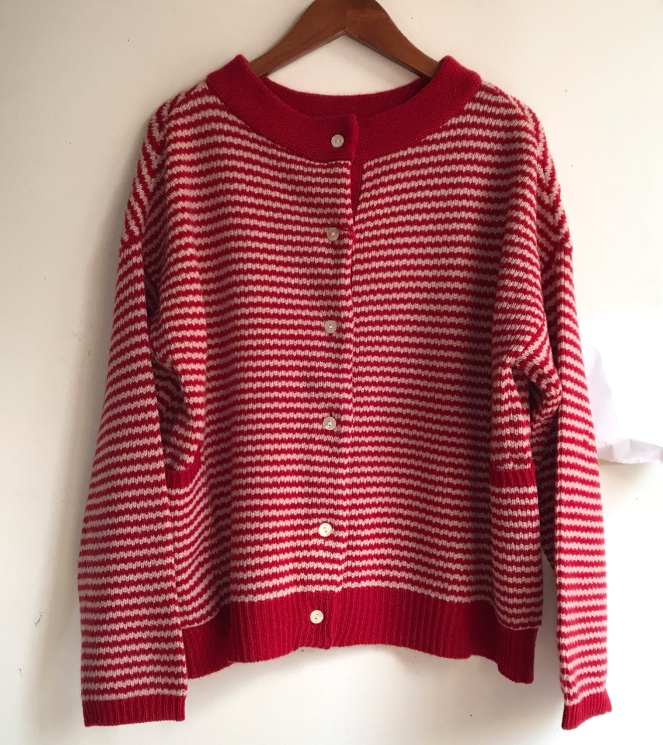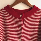 【 YARRA 】2WAY 前後着用 イタリーメリノ2WAYカーディガン プルオーバー レッドボーダー 1542-231 上質ウール【ヤラ】