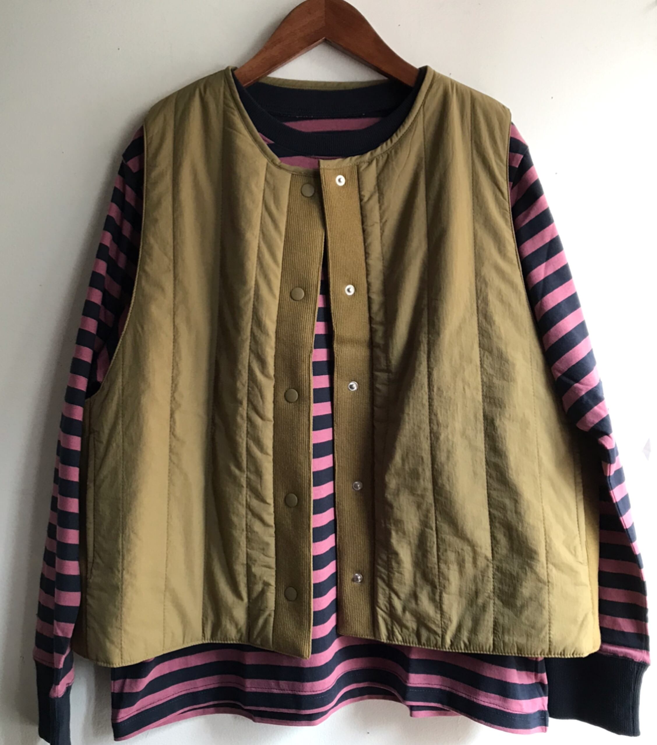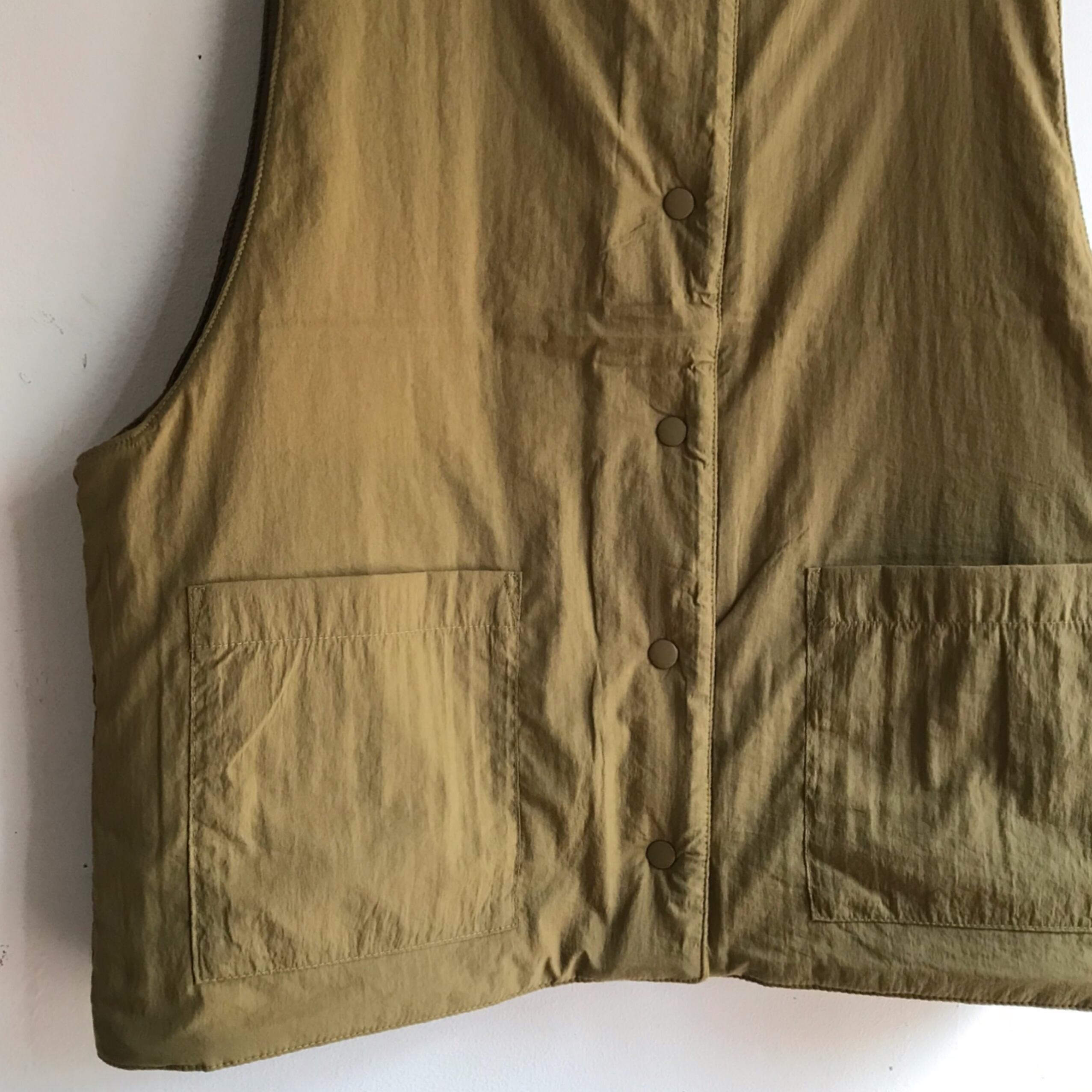 ナイロン素材のリバーシブルで着れる軽いベスト。