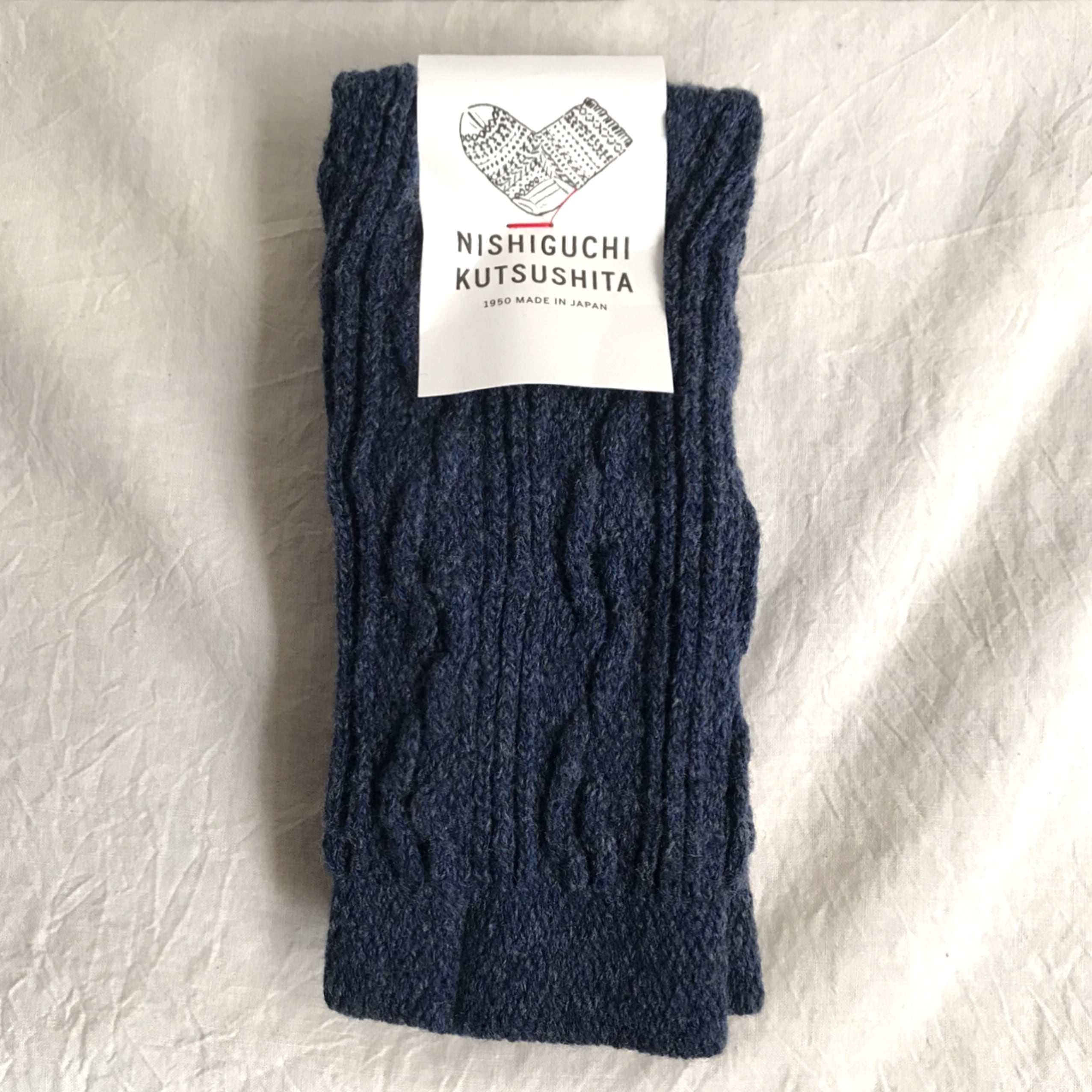 【NISHIGUCHI KUTSUSHITA】ウール縄編み ハンドウォーマー ディープブルー フリーサイズ NK0113 指なし 手袋 日本製 【ニシグチクツシタ】 | cocoa(ココア)ナチュラル服・靴下・ハンドメイド雑貨・アクセサリーの通販