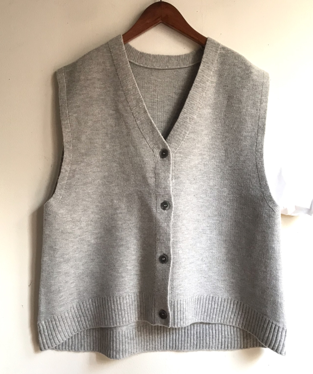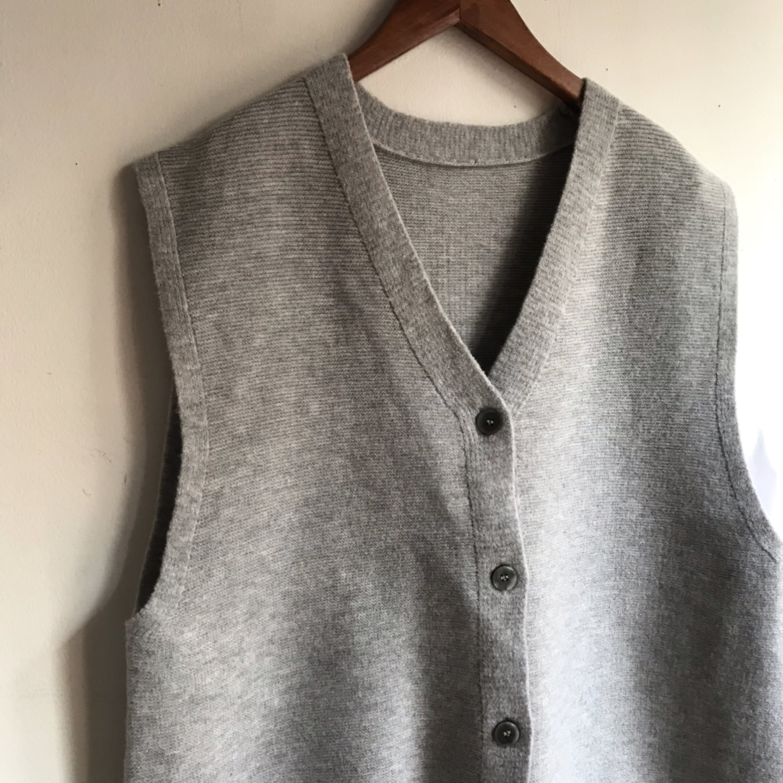 ふんわり優しい肌触りのVネック前開きベストです。
