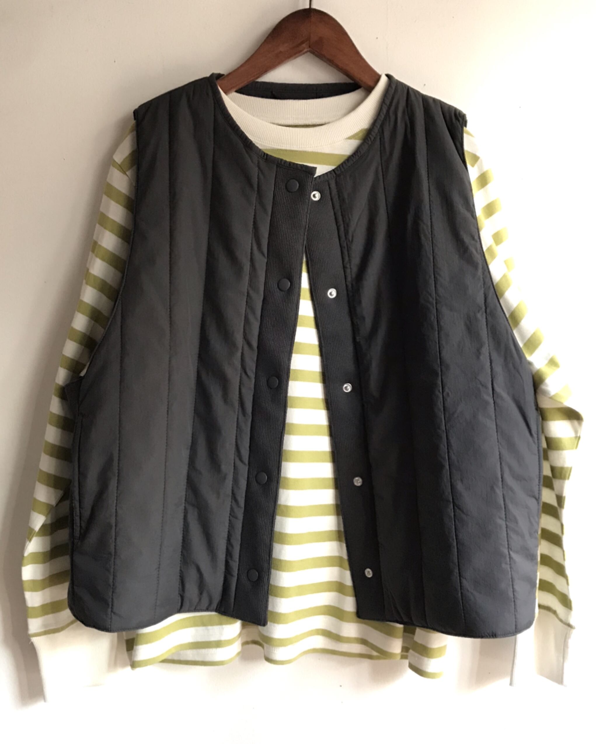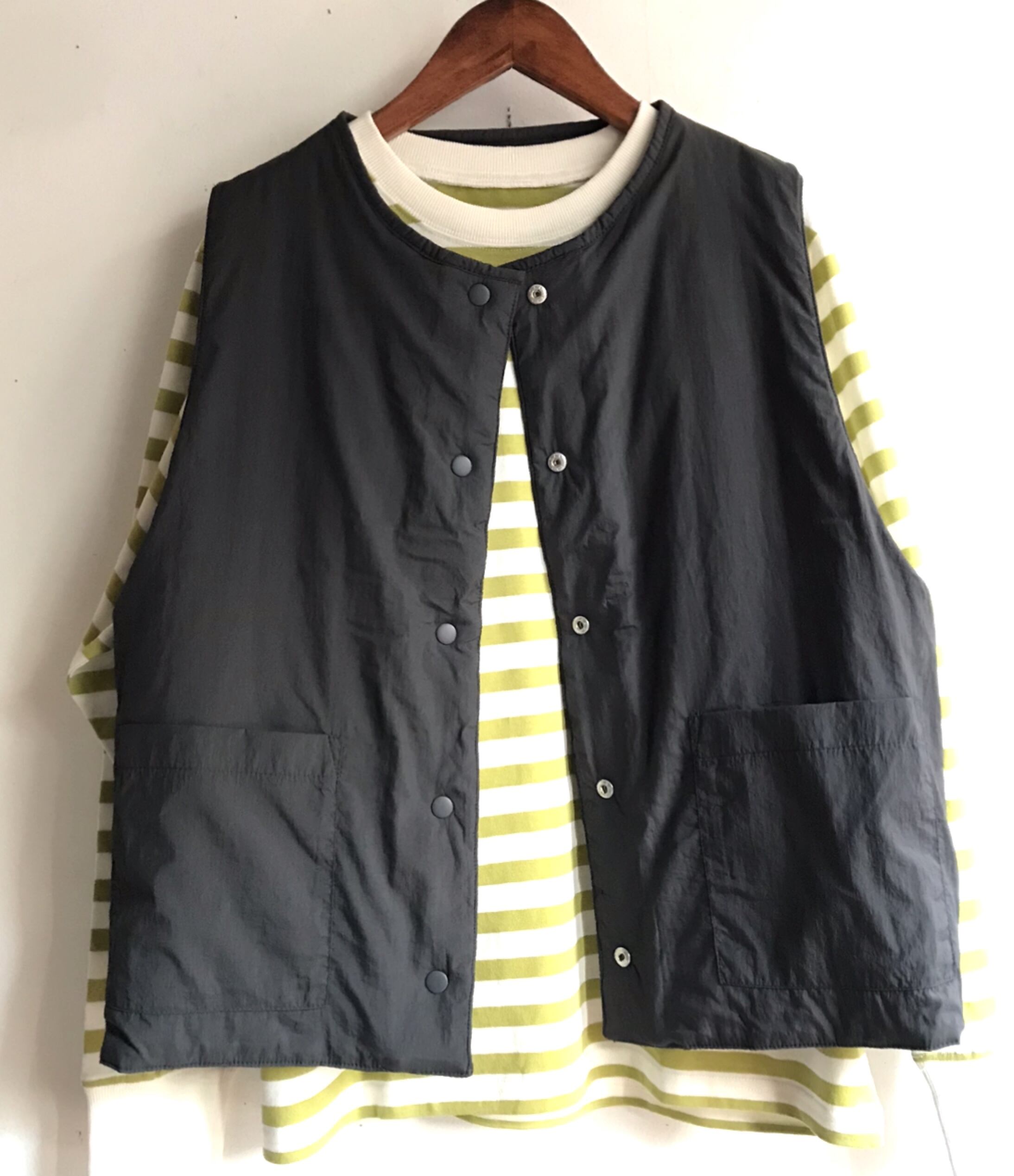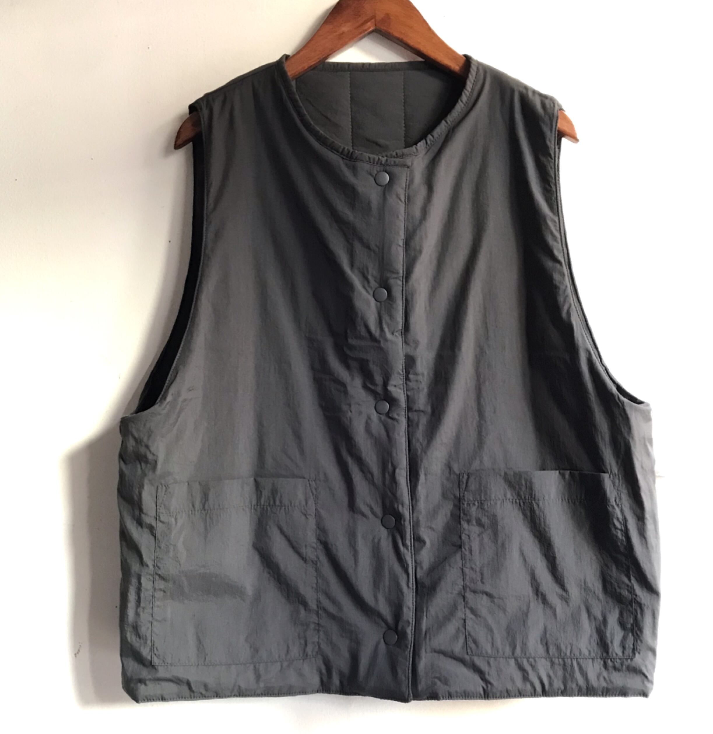 ナイロン素材のリバーシブルで着れる軽いベスト。