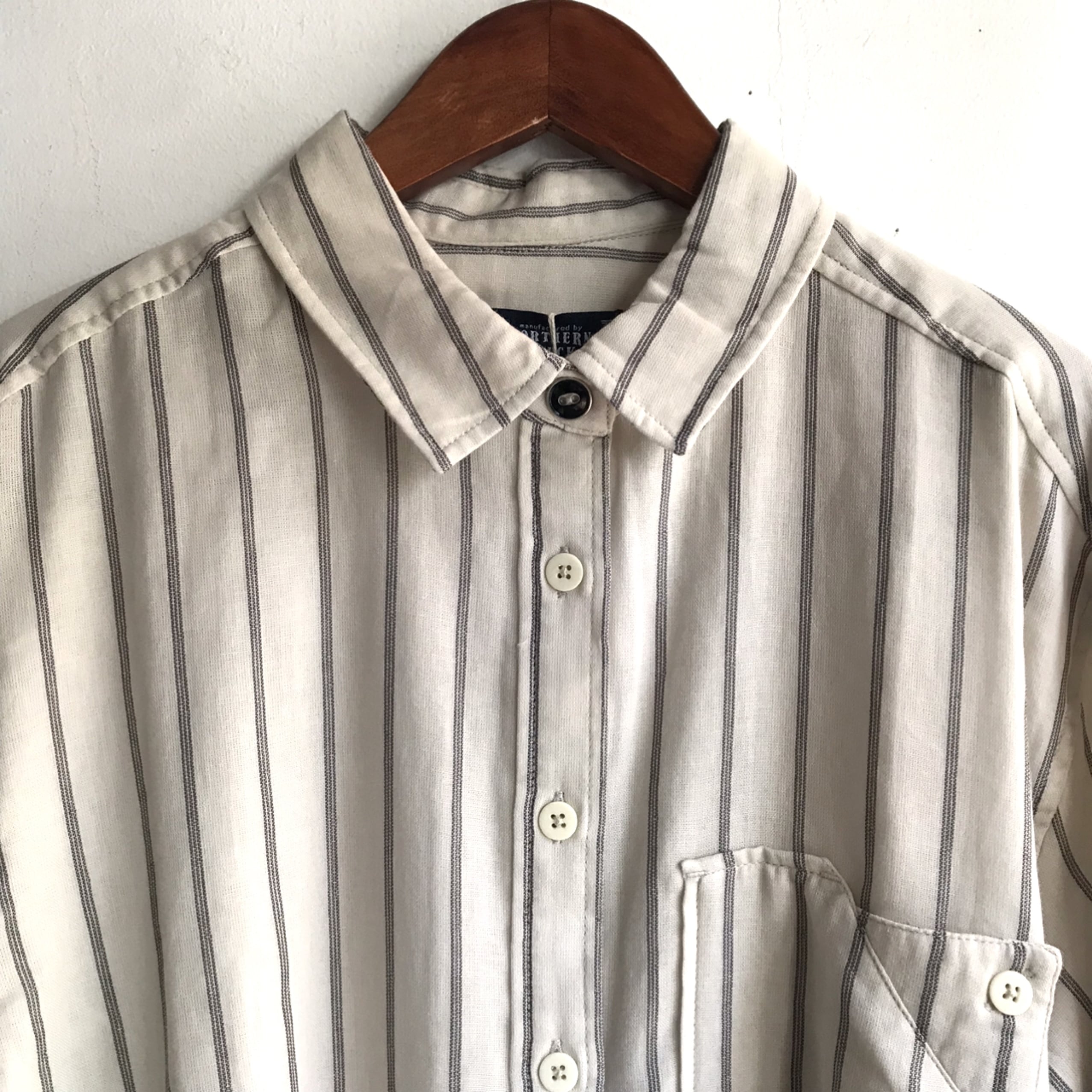 【 NORTHERN TRUCK 】綿100% ワークポケットストライプシャツ アイボリー Mサイズ NIMV5651【ノーザントラック】 | cocoa(ココア)ナチュラル服・靴下・ハンドメイド雑貨・アクセサリーの通販