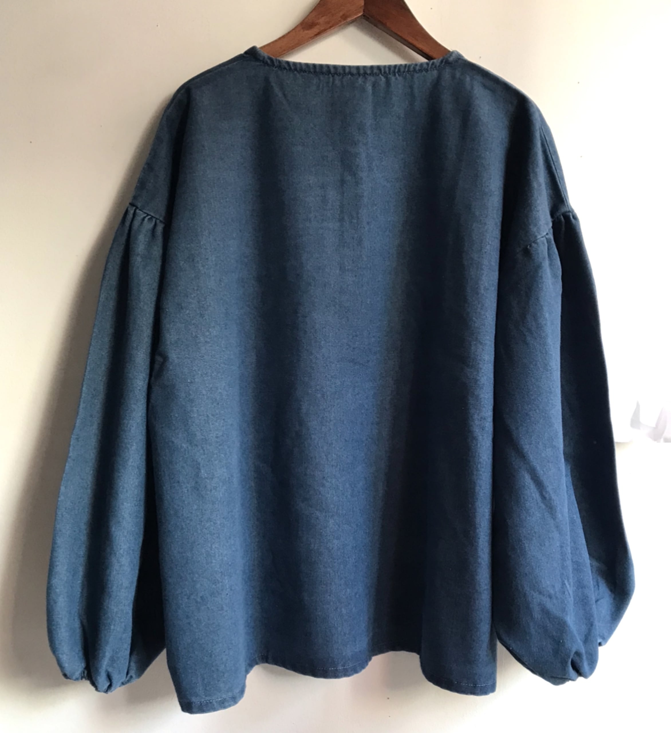 【商品名】デニム刺繍前開きブラウス CLF1079