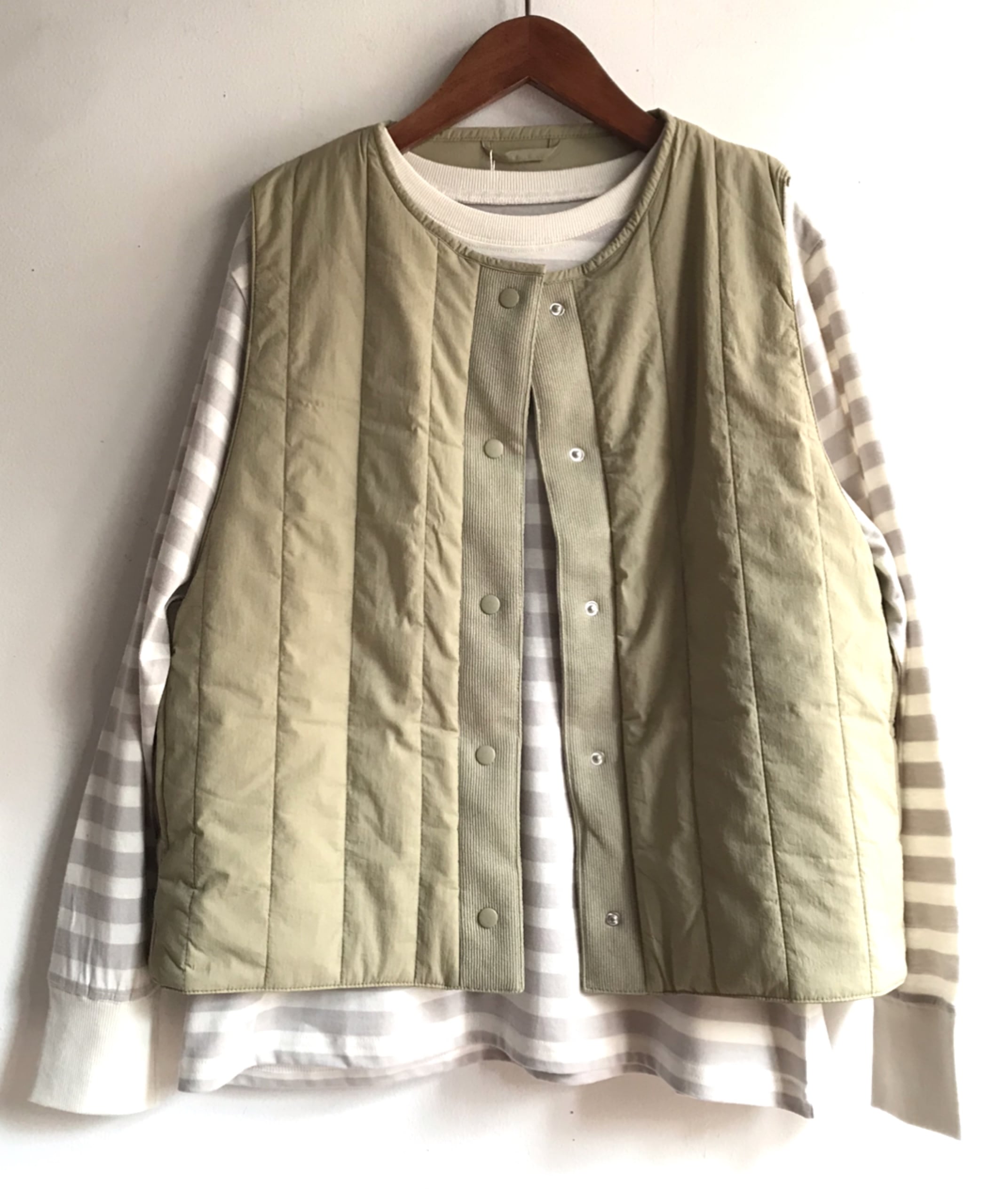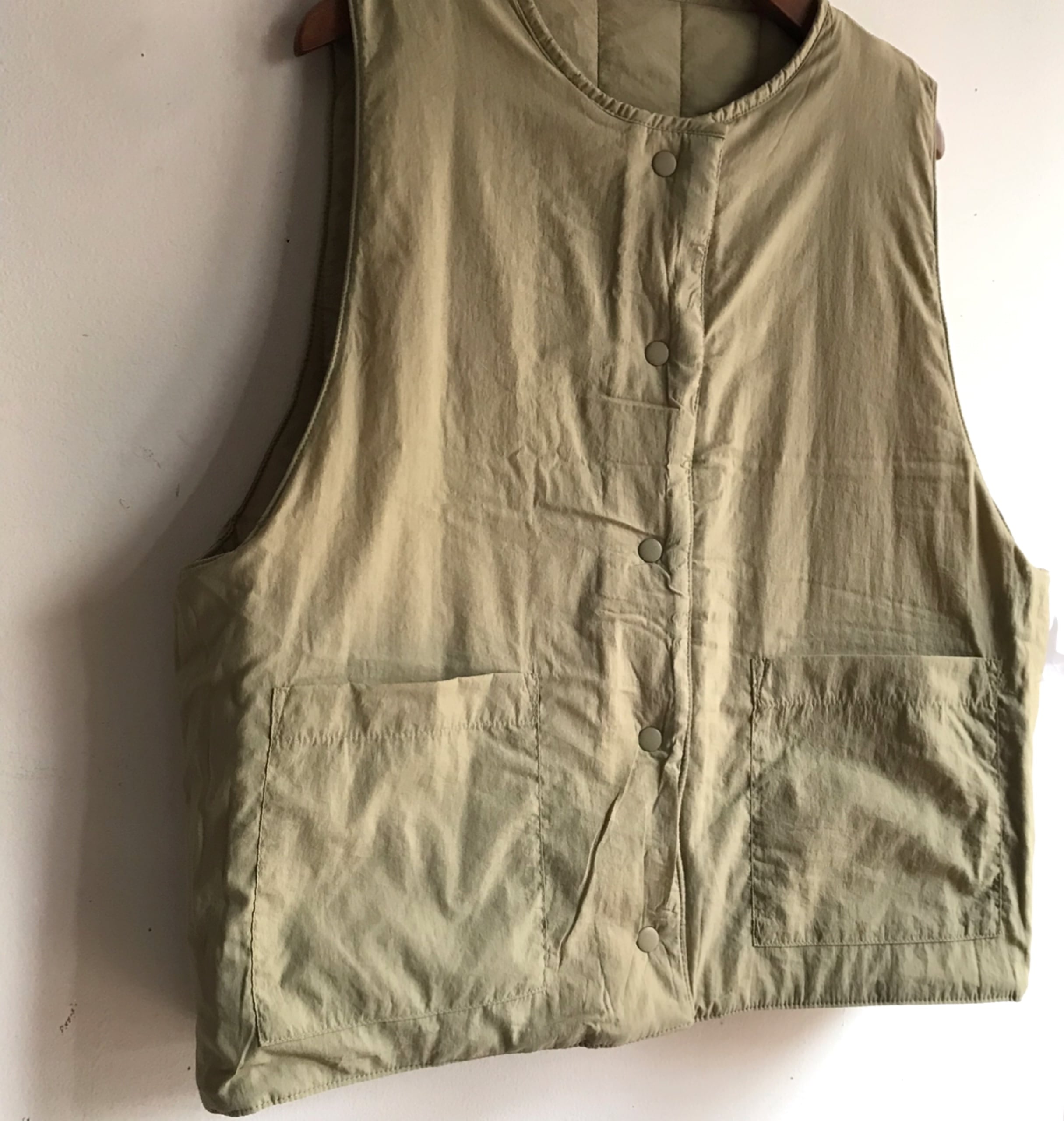 ナイロン素材のリバーシブルで着れる軽いベスト。