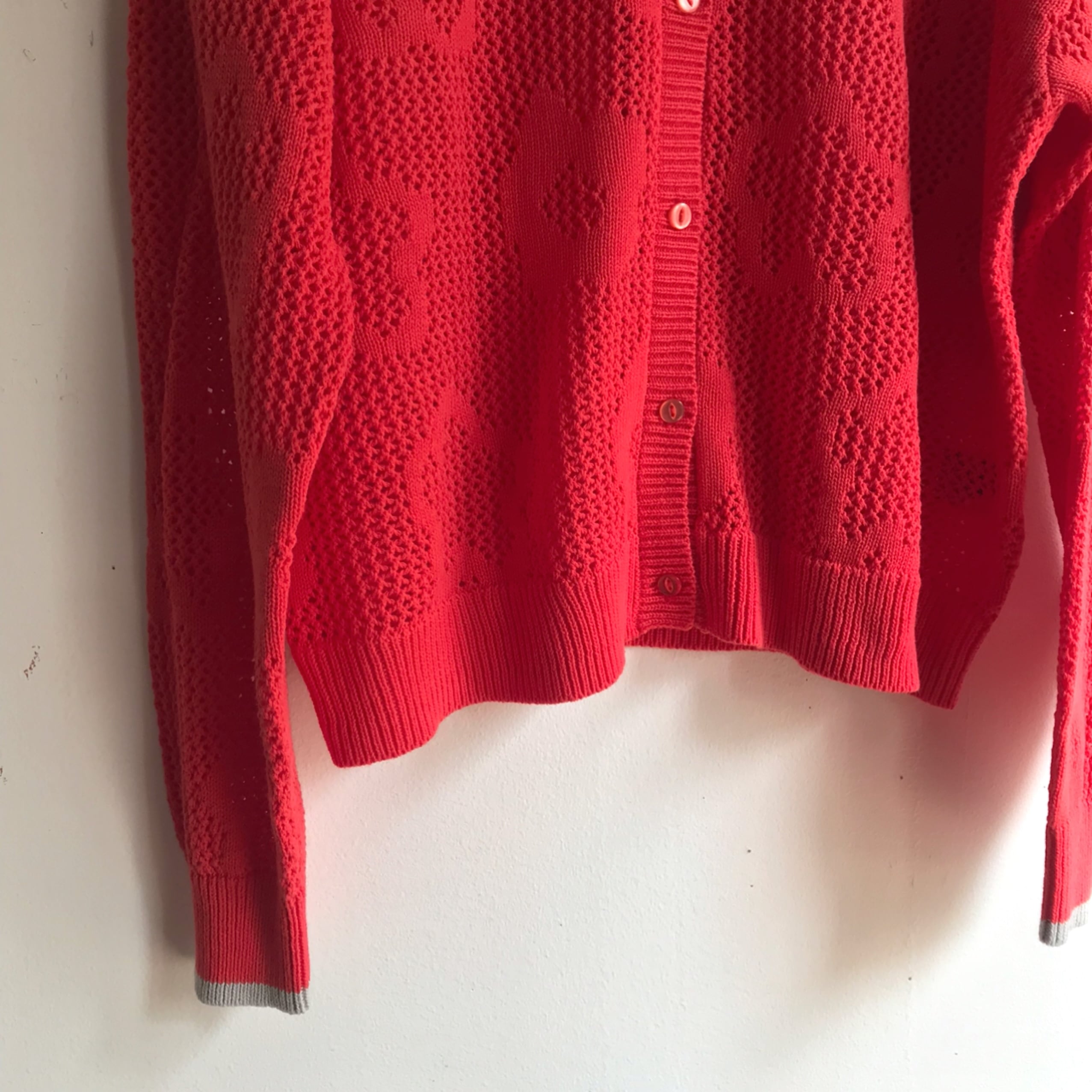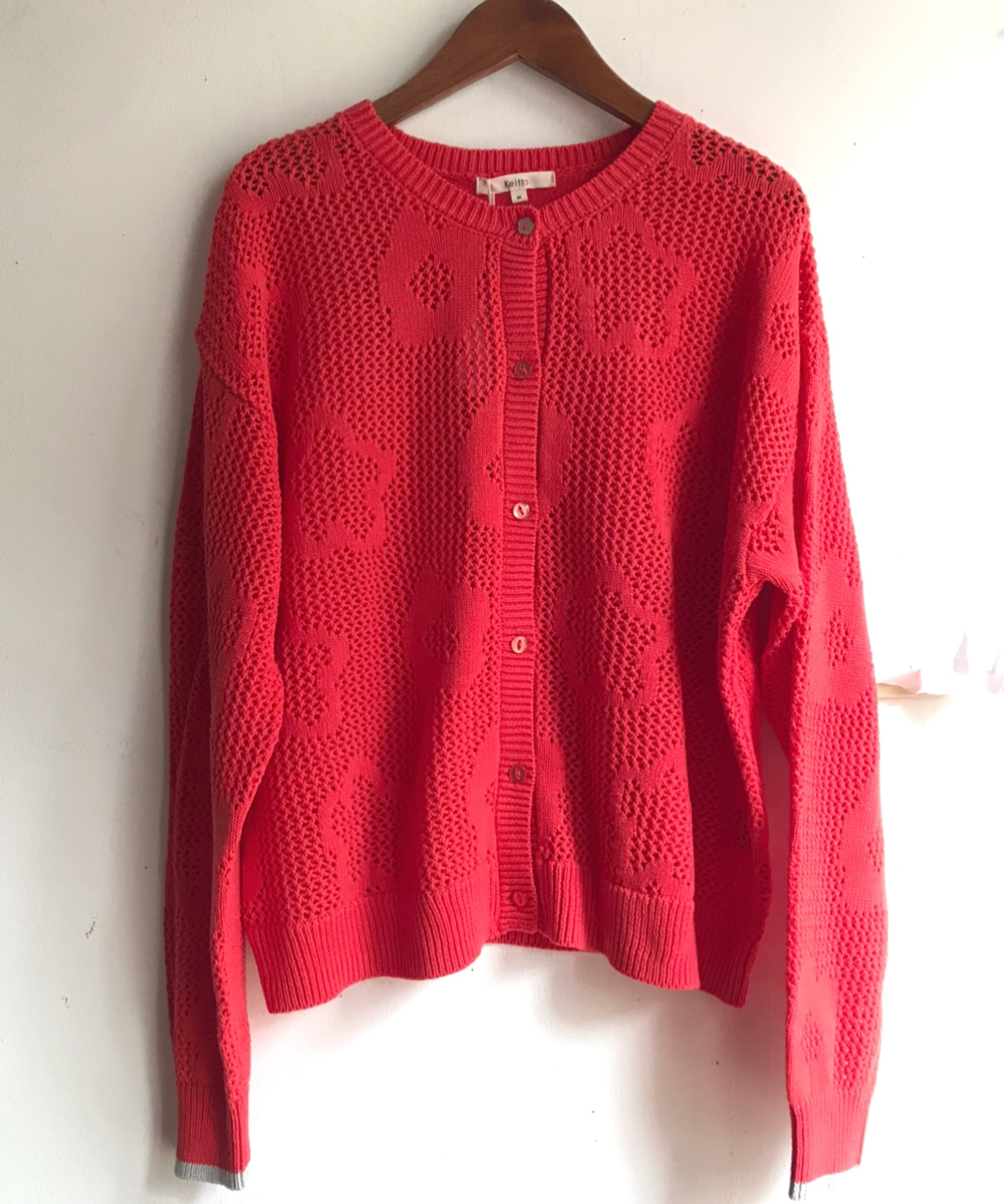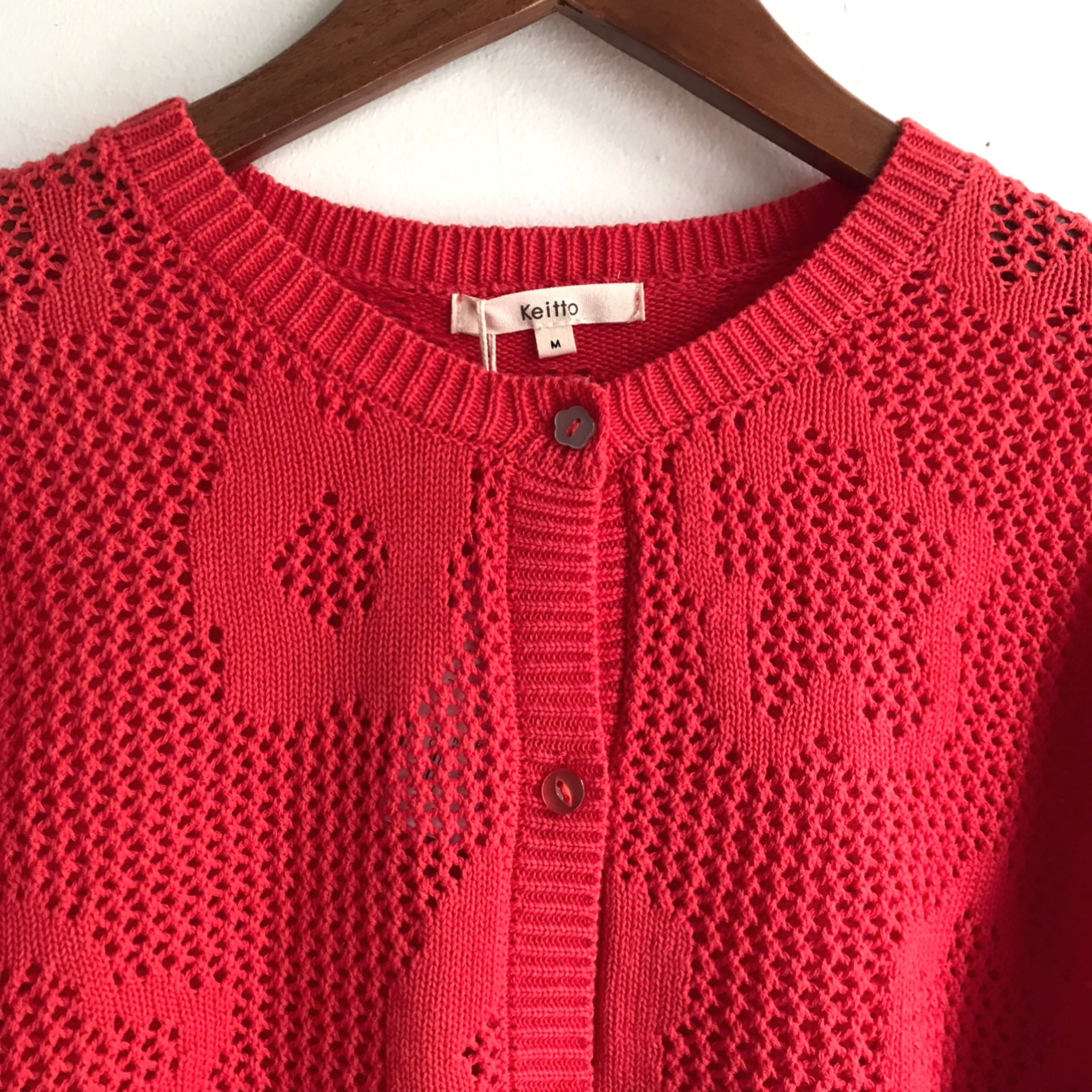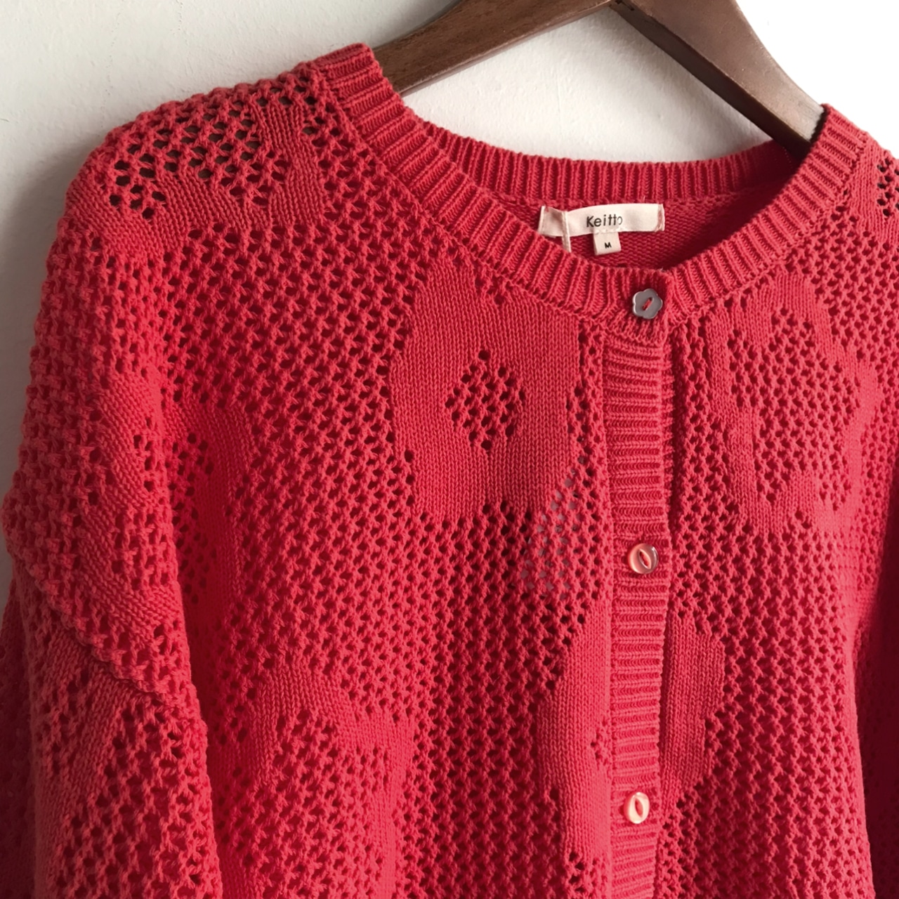 【 Keitto 】綿100% お花メッシュジャカードニットカーディガン レッド Mサイズ KBHH6156【ケイット】