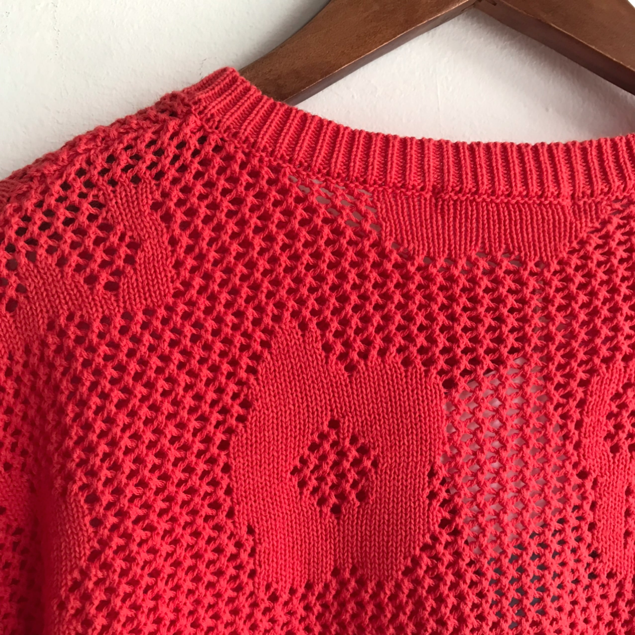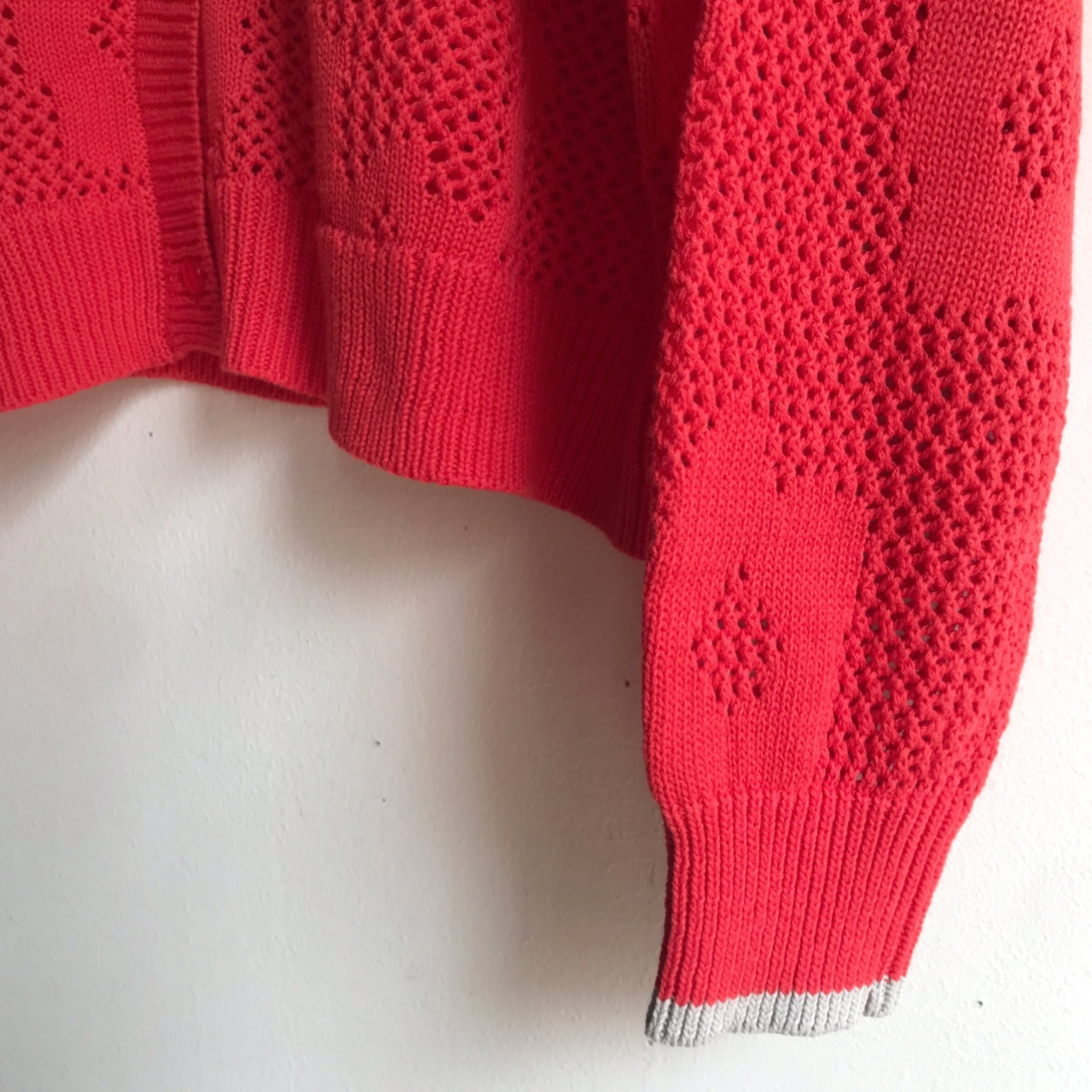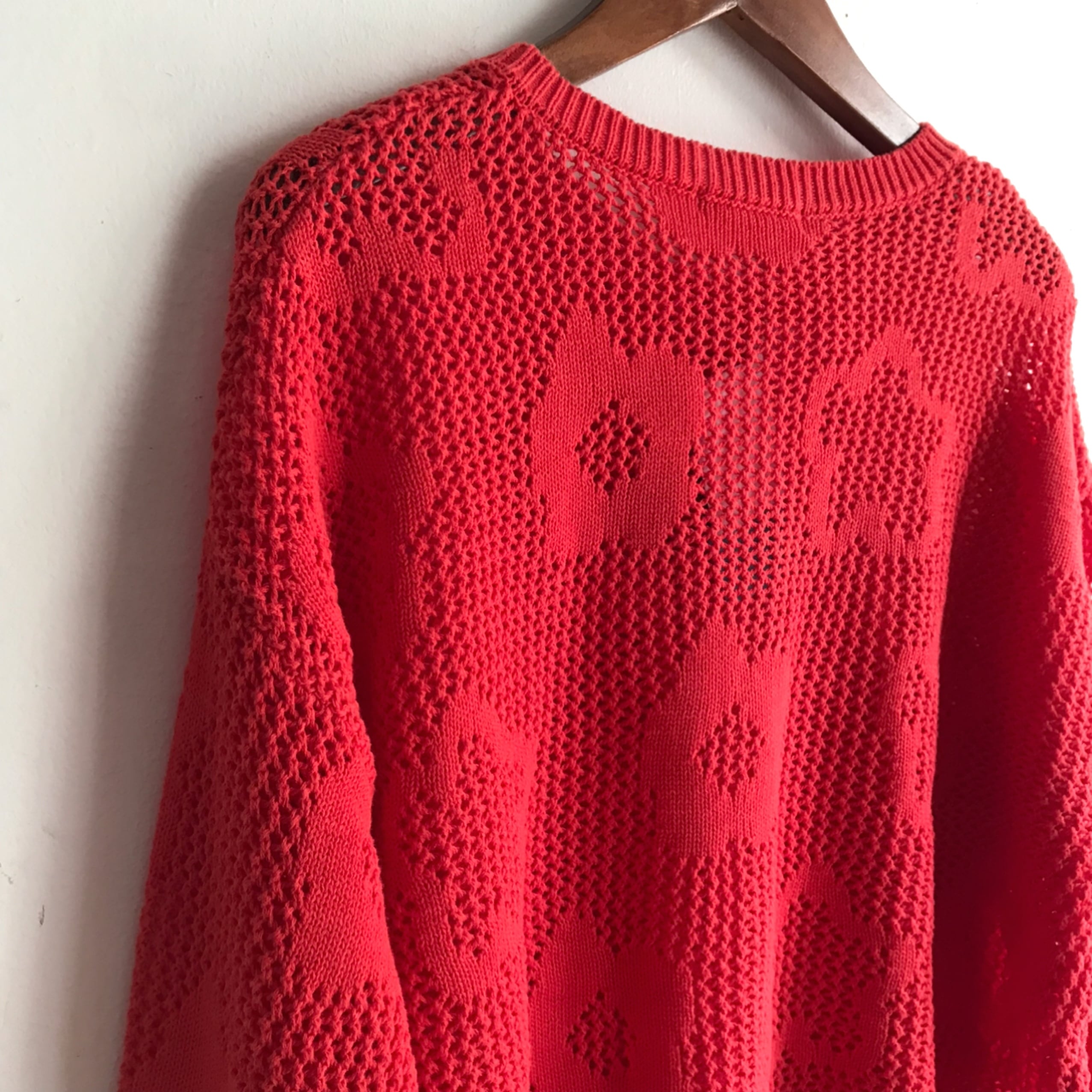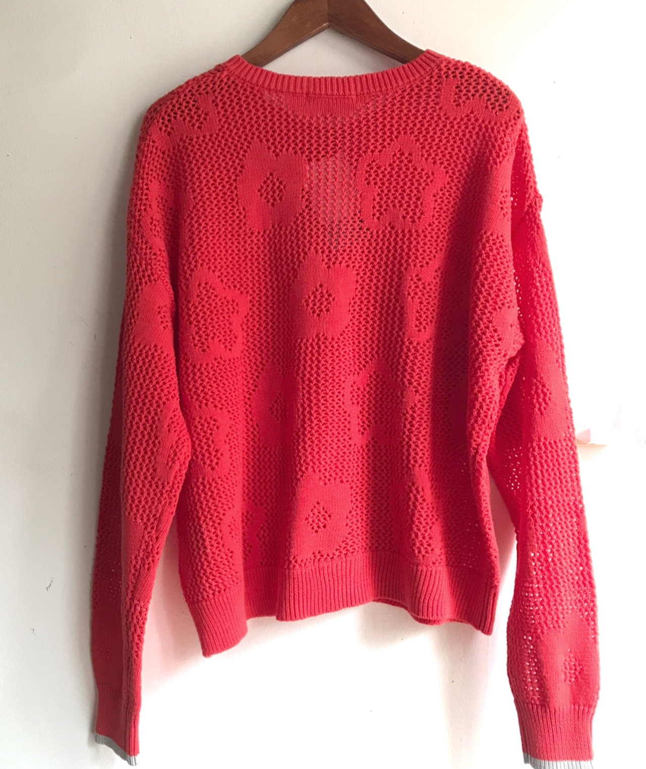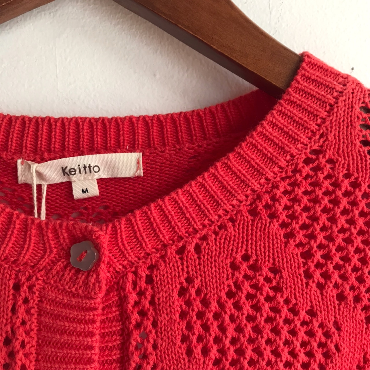 【 Keitto 】綿100% お花メッシュジャカードニットカーディガン レッド Mサイズ KBHH6156【ケイット】