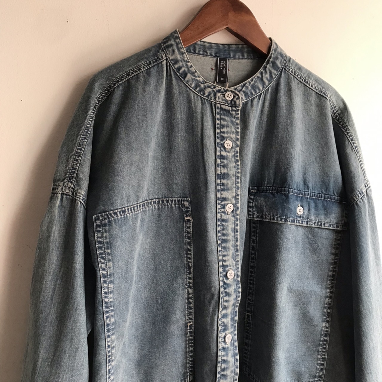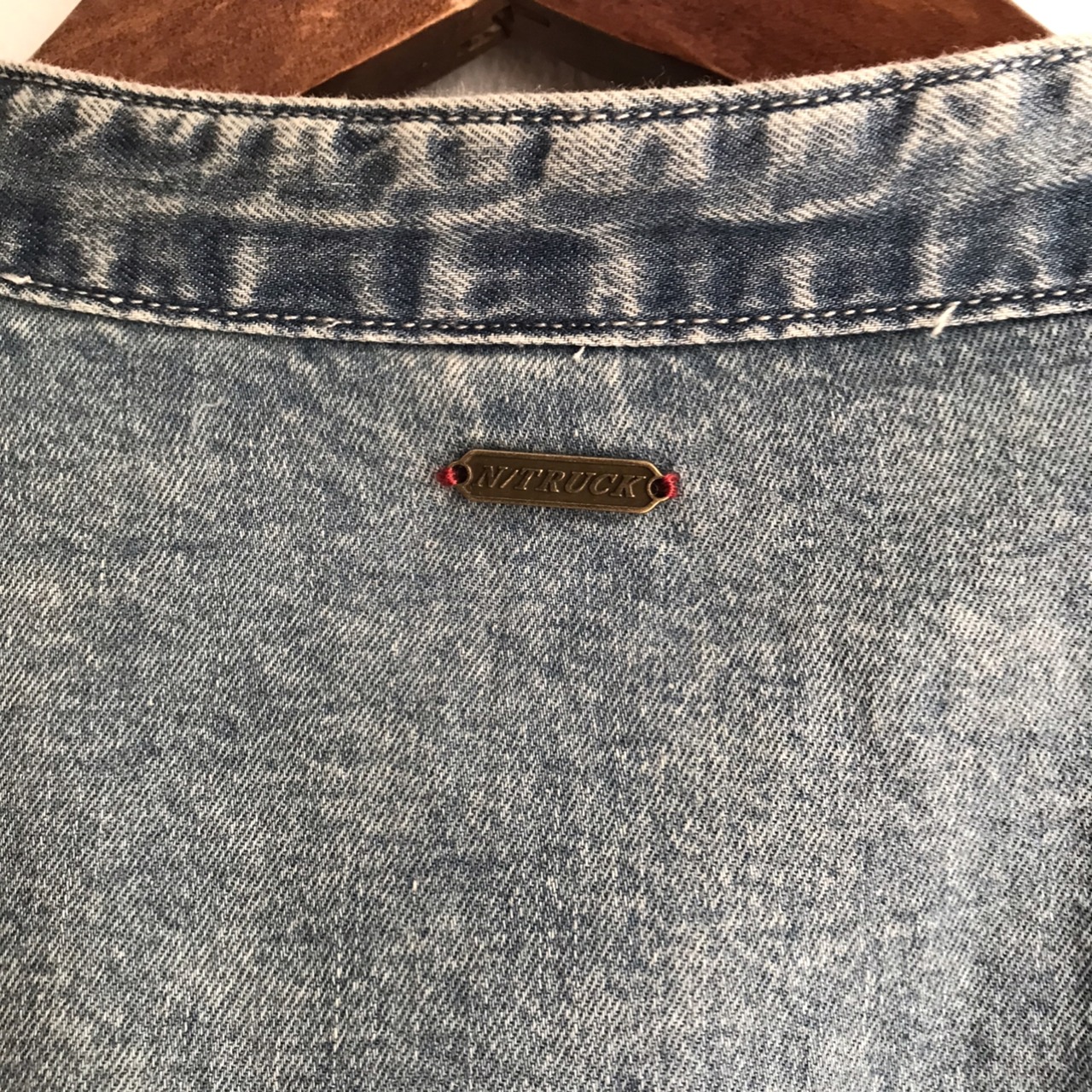 後ろ衿下にUSA古着プレートをイメージした金属プレートを施しています。