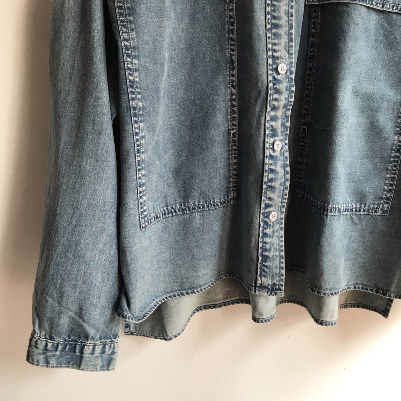生地をブリーチ+オーバーダイ+ケミカル加工を重ねヴィンテージライクな深みのある色合いに仕上げています。