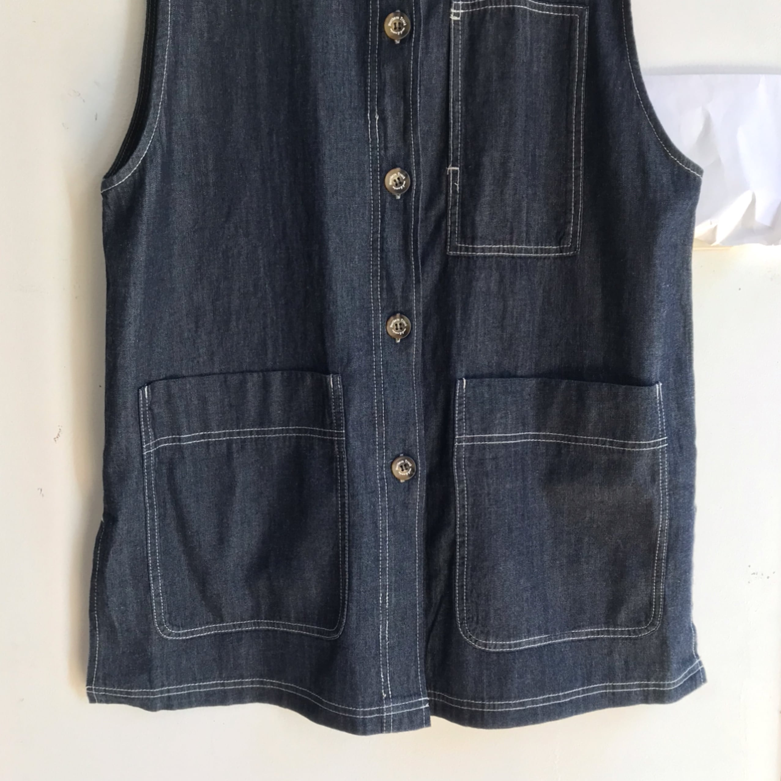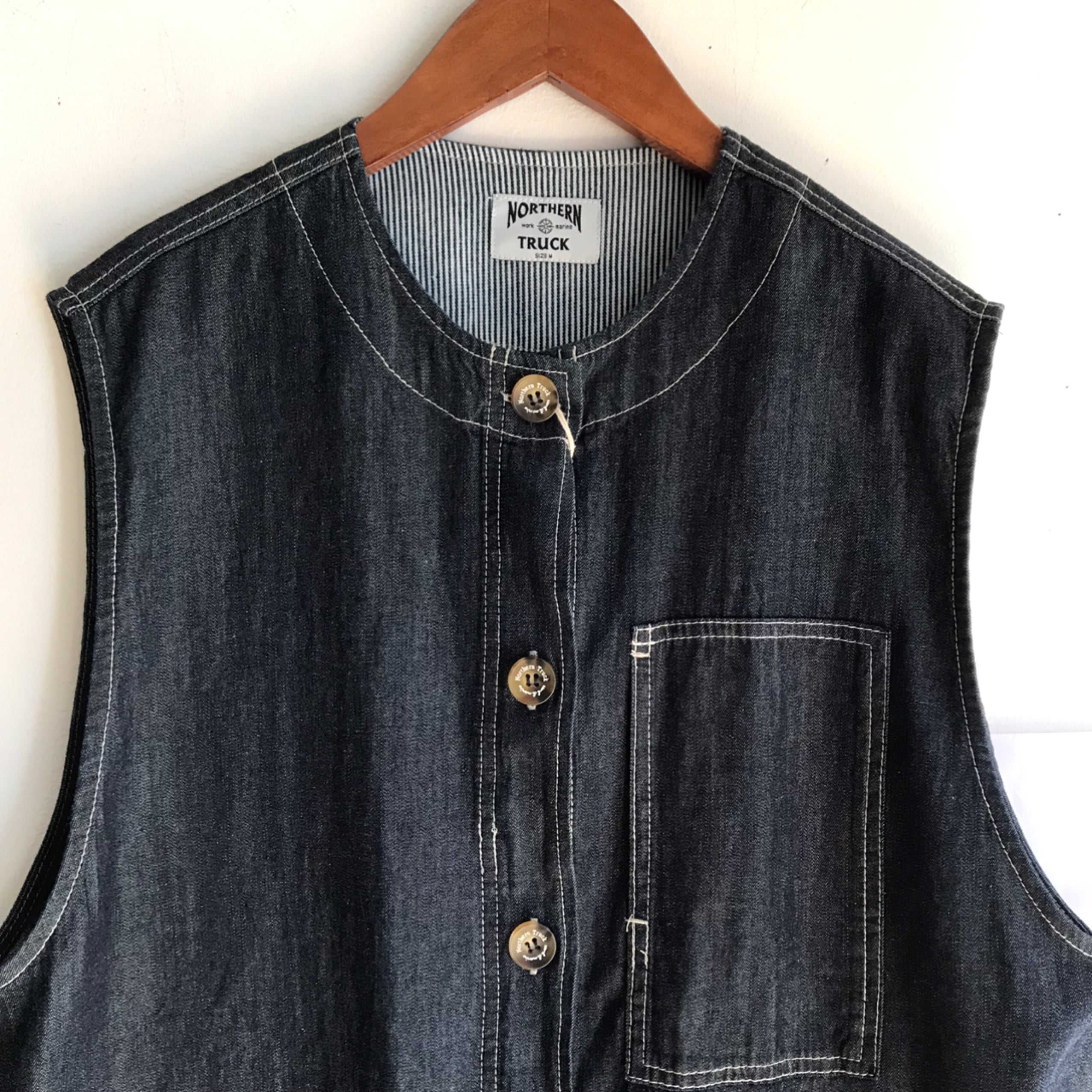 【 NORTHERN TRUCK 】綿100% ノーカラーロングベスト インディゴネイビー Mサイズ NCMP6180【ノーザントラック】