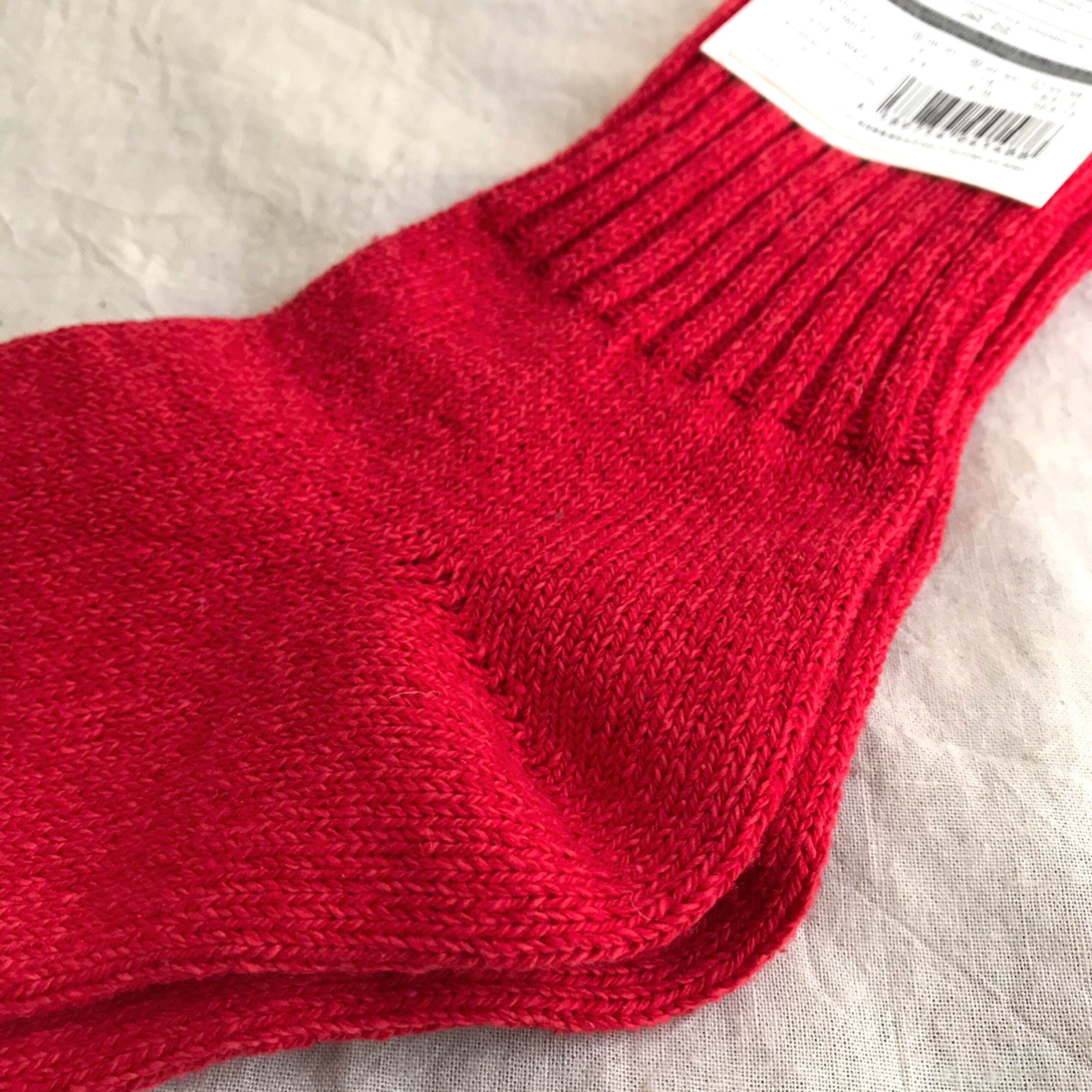 赤い靴下はお洋服とのコーディネートで差し色になりお洒落度UPする優れものです。